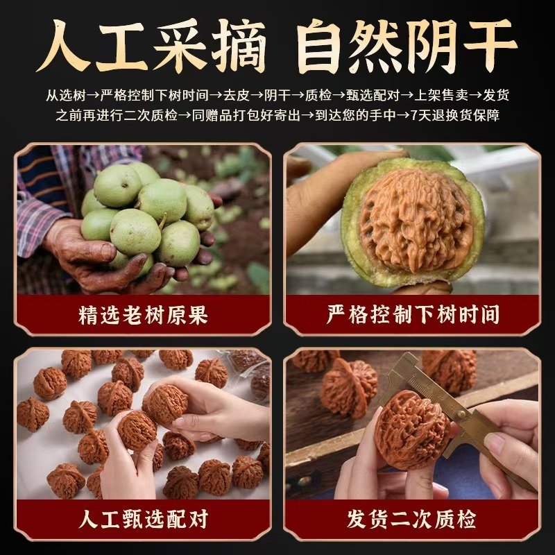 精品四座楼文玩核桃锻炼脑力把玩盘玩麒麟纹官帽盘核桃包浆