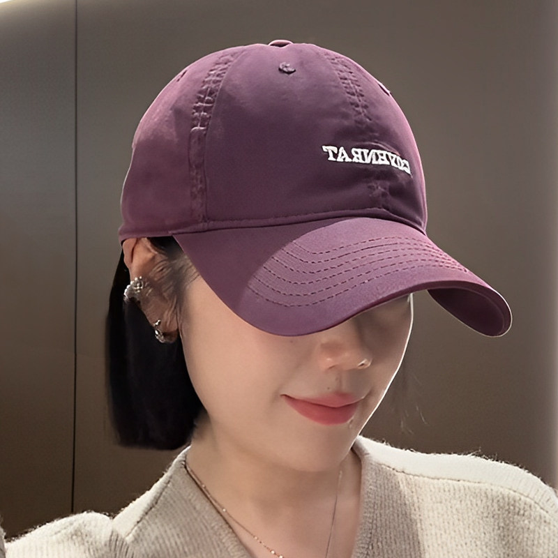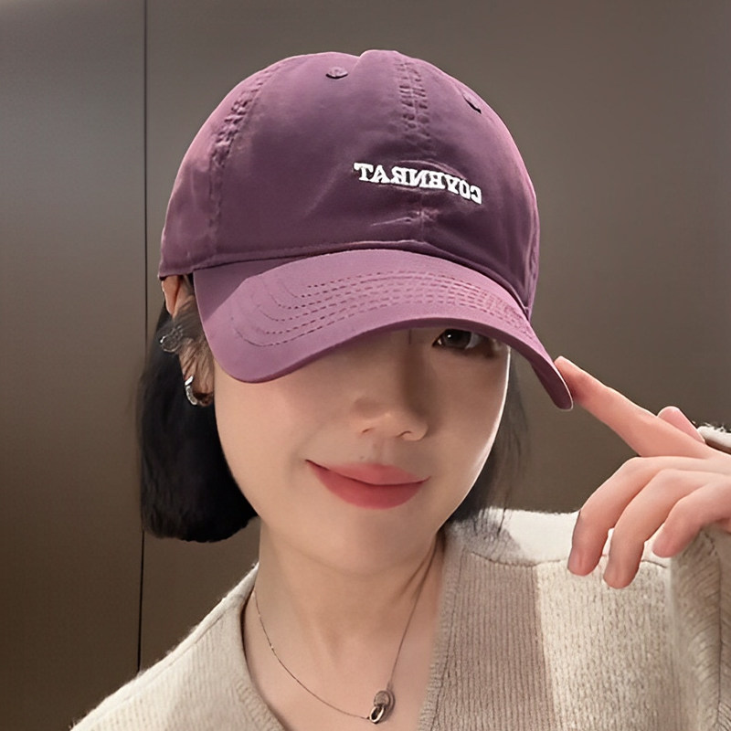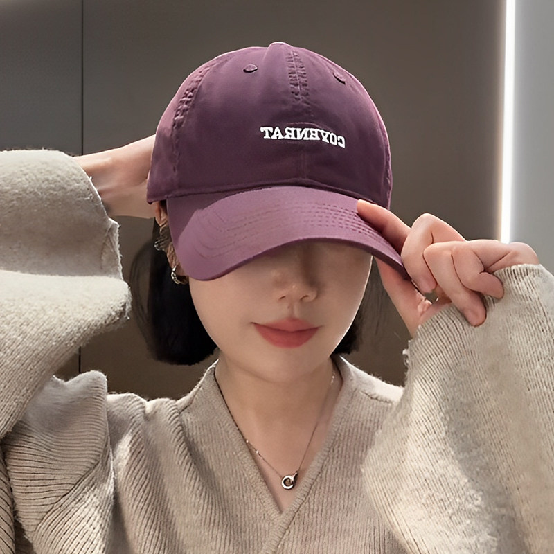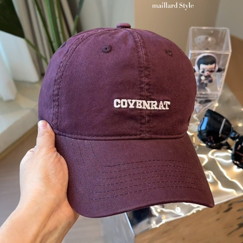 新款酱紫色简约百搭鸭舌帽韩版加大加深显脸小字母刺绣棒球帽子女