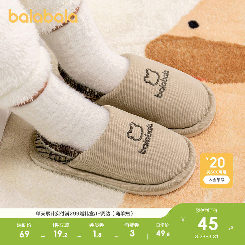 巴拉巴拉儿童亚麻拖鞋男童女童秋冬室内宝宝地板静音幼儿棉麻拖鞋