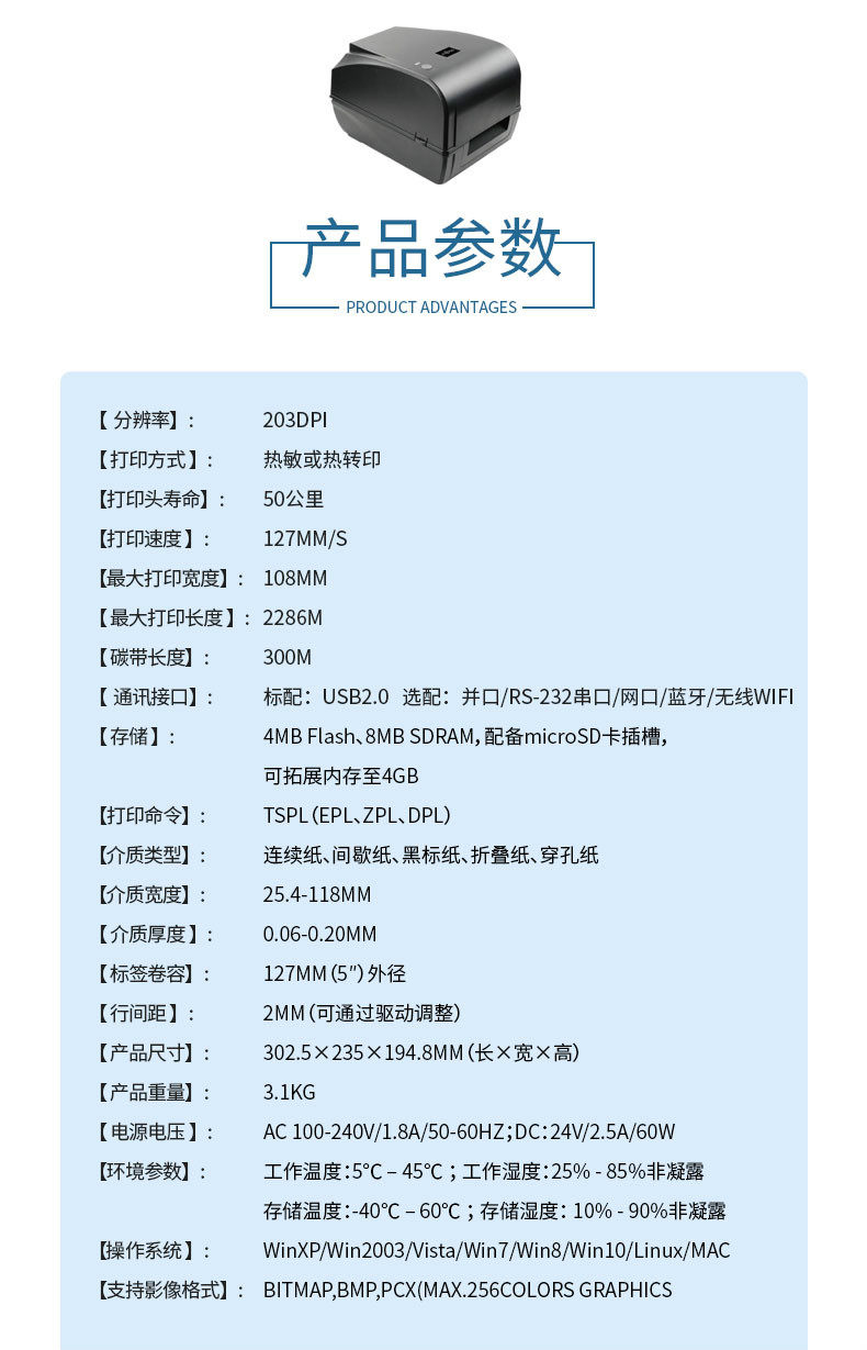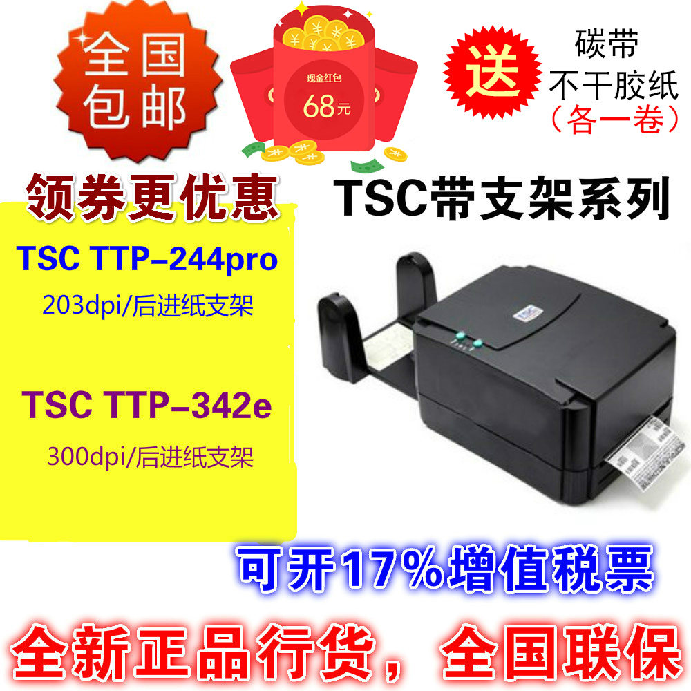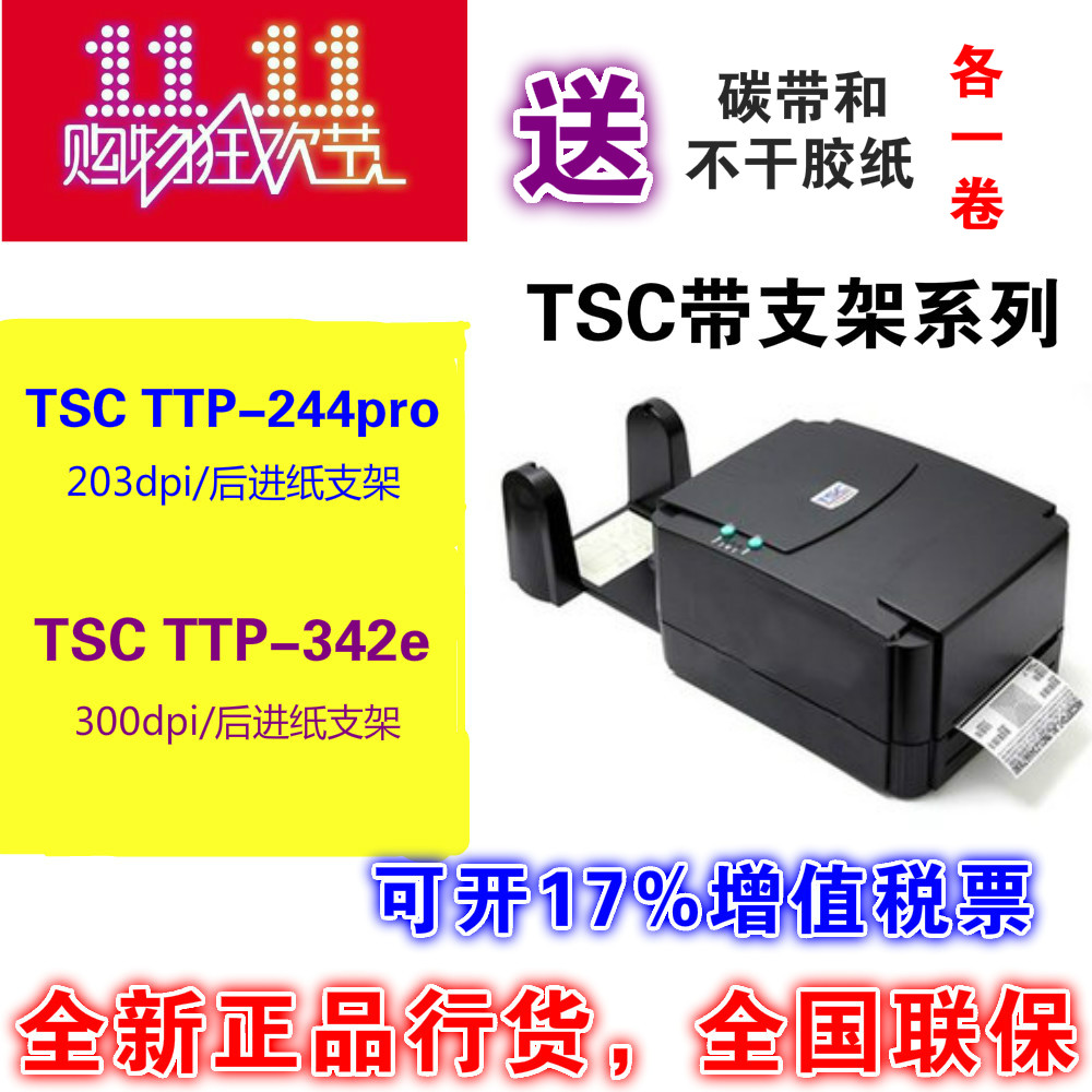 TSC ttp244pro/342pro/TE244/TE344标签不干胶碳带条码蓝牙打印机