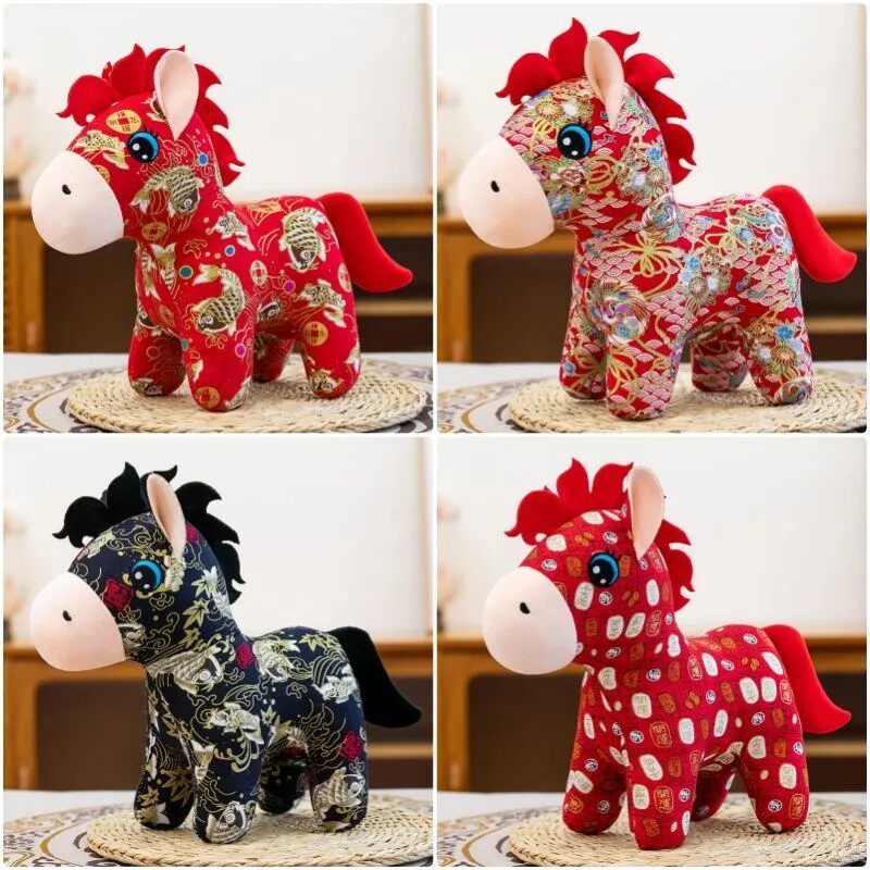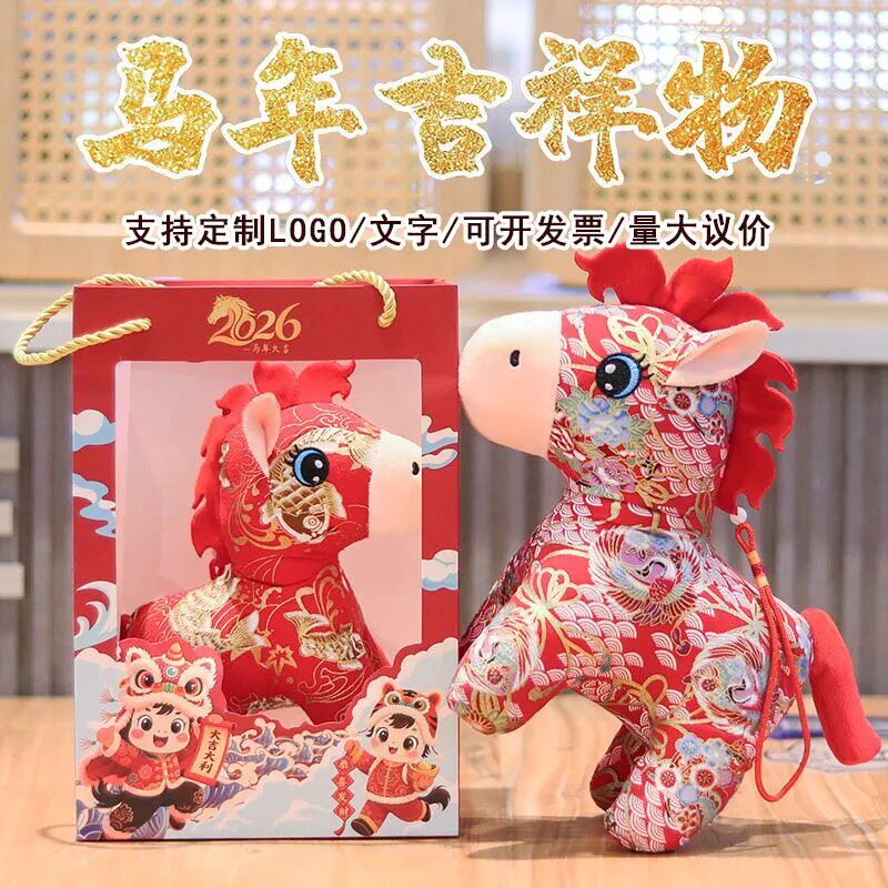 新年摆件2026马年吉祥物生肖公仔花布艺马玩偶毛绒玩具开门红年