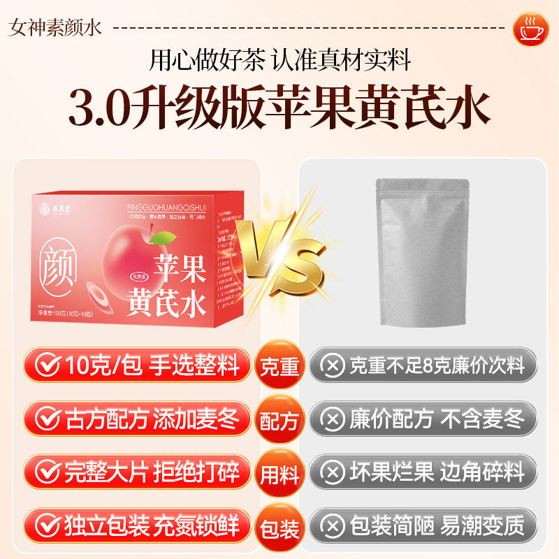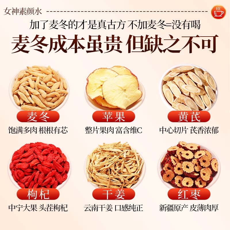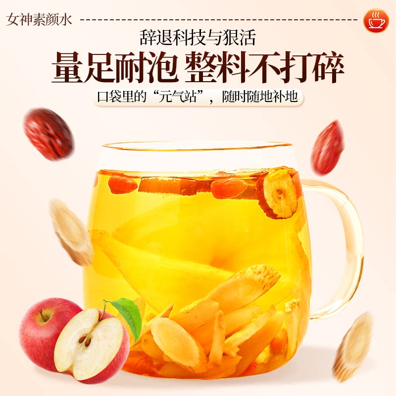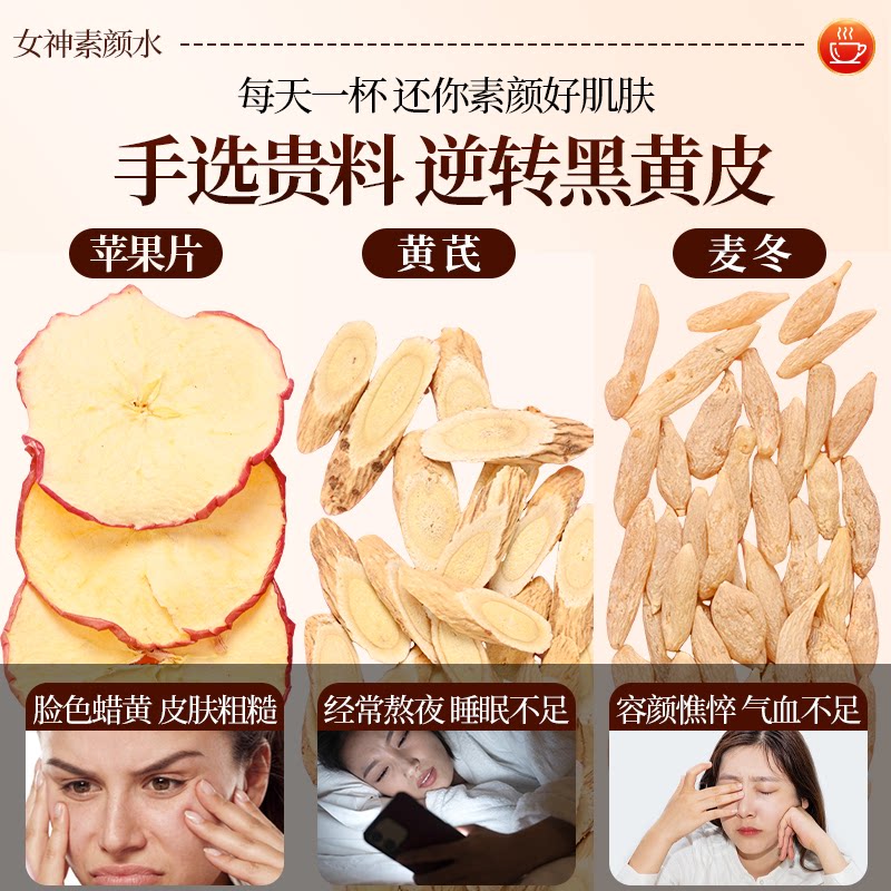 苹果黄芪水麦冬红枣枸杞茶调理女生素颜水暗黄补气养血女人养生茶