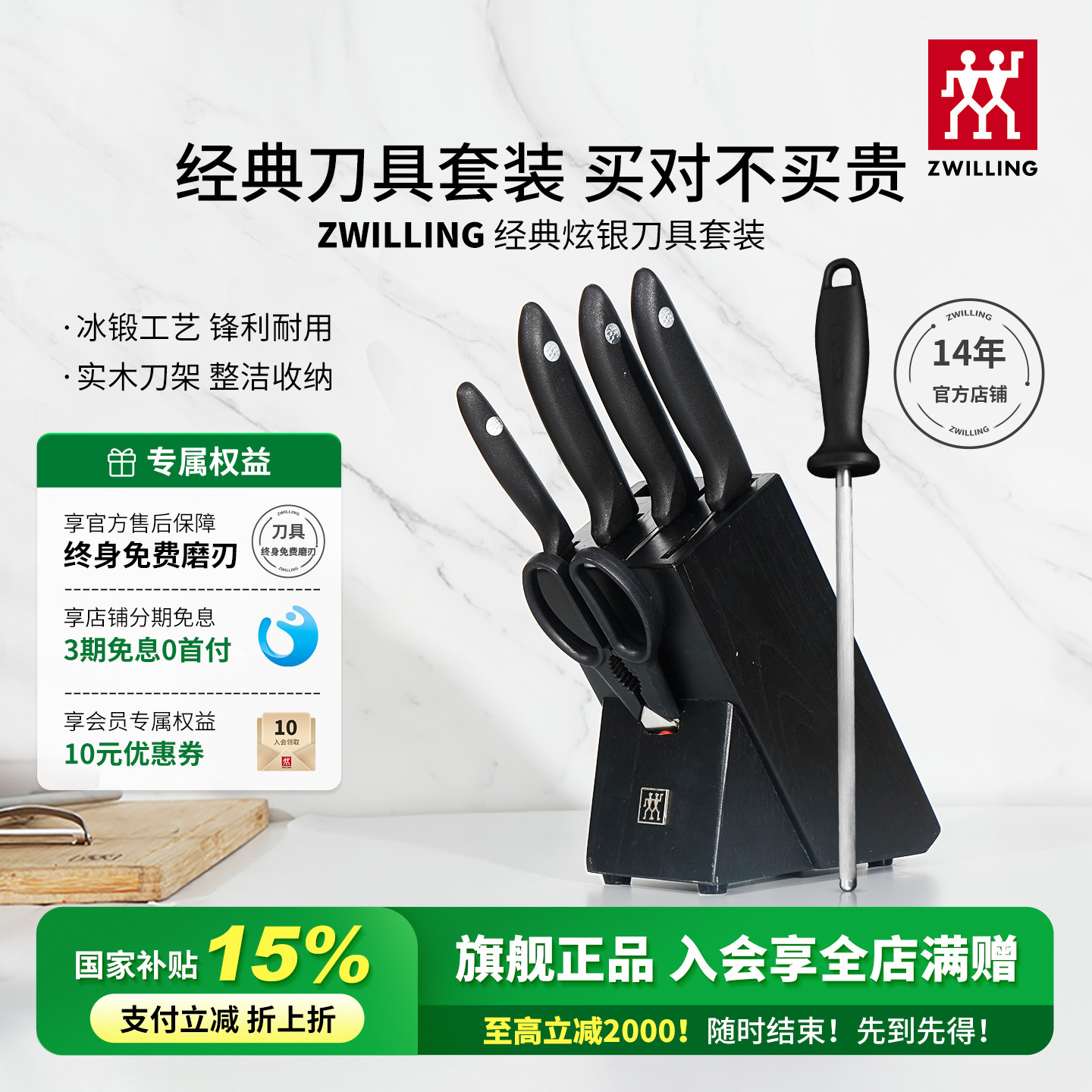德国双立人刀具套装经典炫银刀套厨房家用不锈钢切菜刀砍骨刀官方