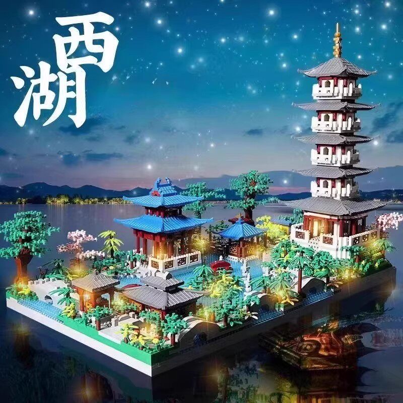 兼容乐高杭州西湖积木苏州园林高难度建筑拼图模型男女孩拼装玩具
