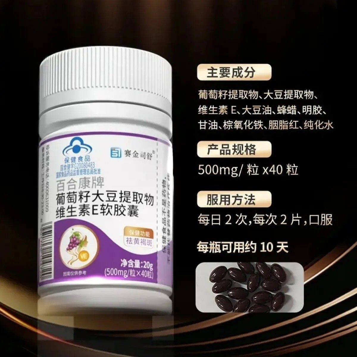 葡萄籽大豆提取物天然维生素e软胶囊维e胶囊黄褐斑正品维生素E