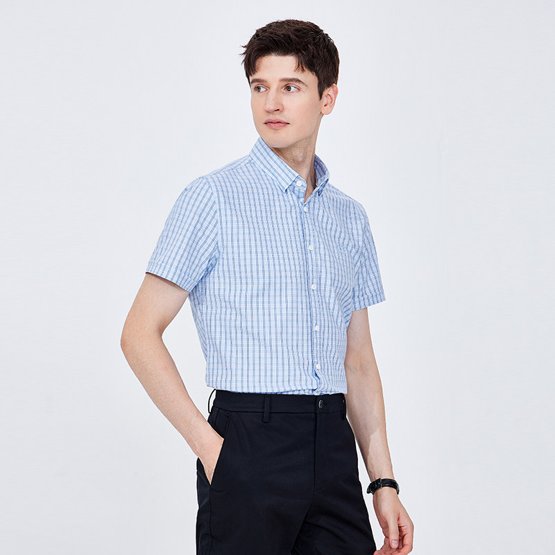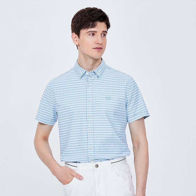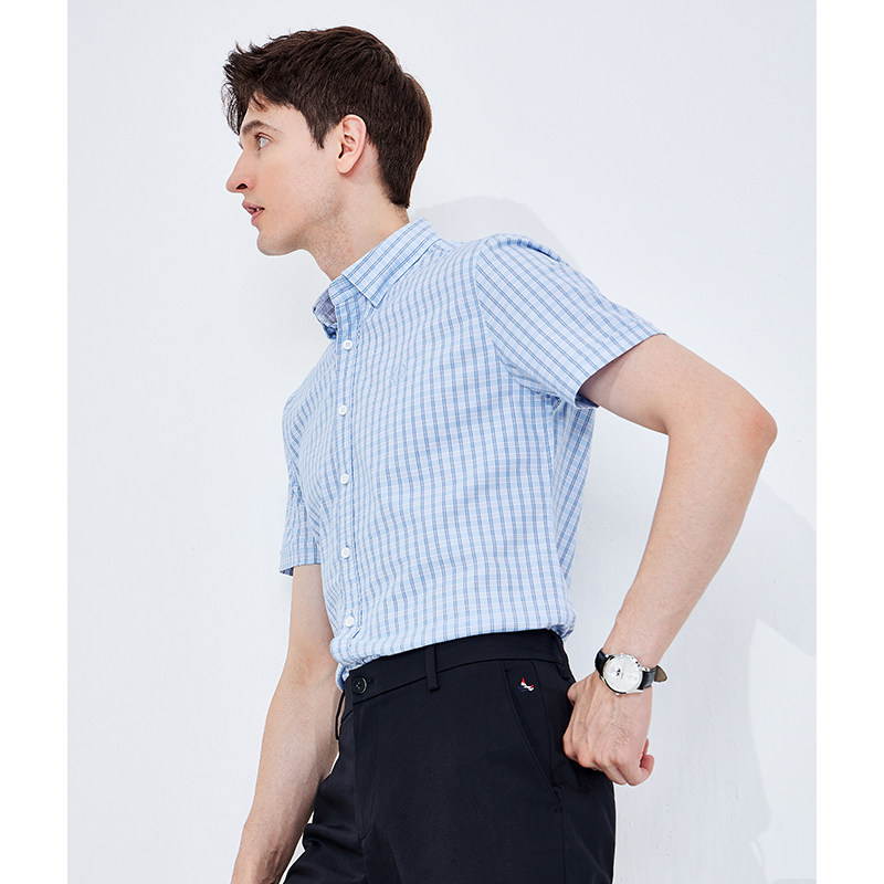 [凉感]Navigare意大利小帆船格子短袖衬衫男夏季休闲衬衣