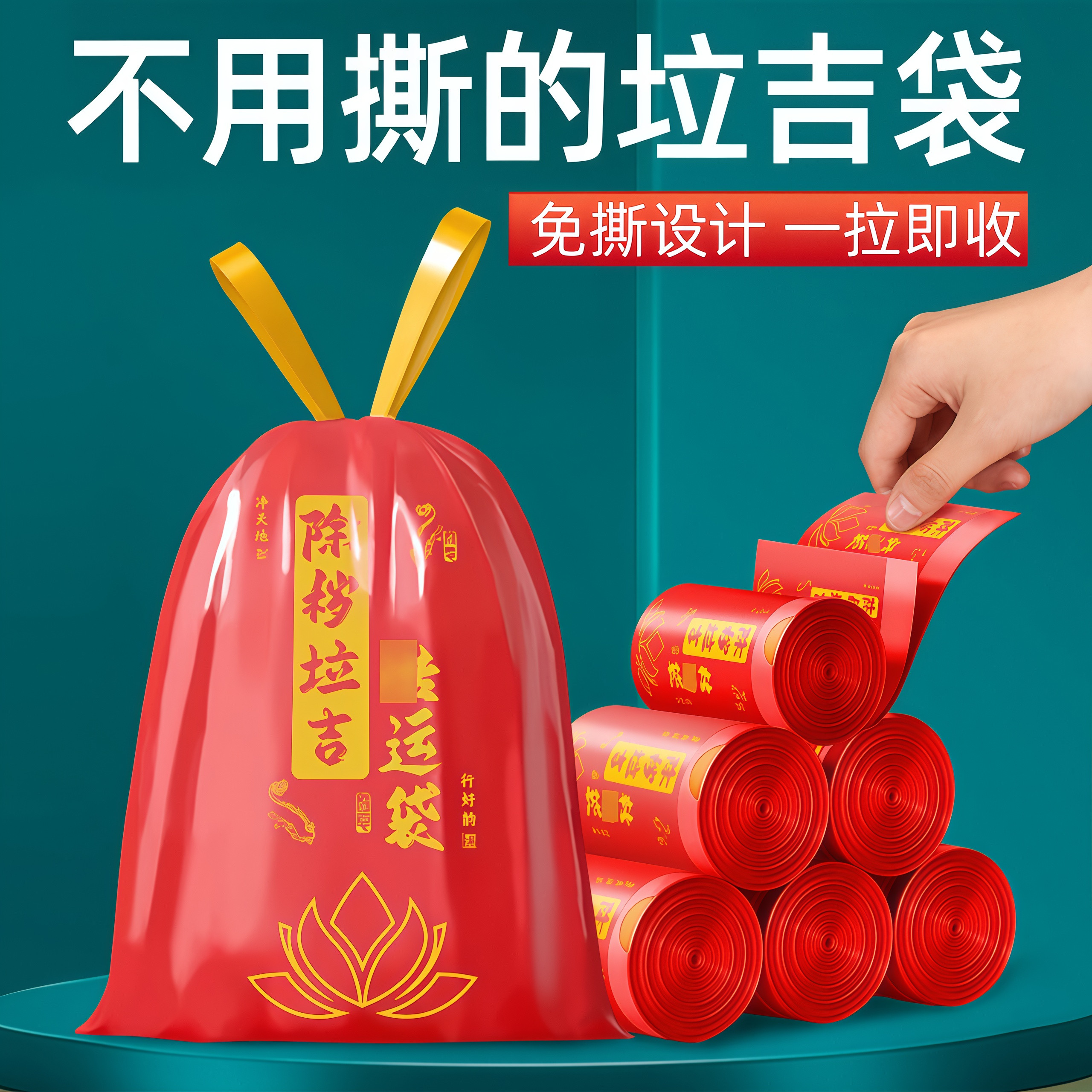 红色除秽拉吉转运袋提绳式免撕塑料袋手提加厚加大吉祥红色垃圾袋
