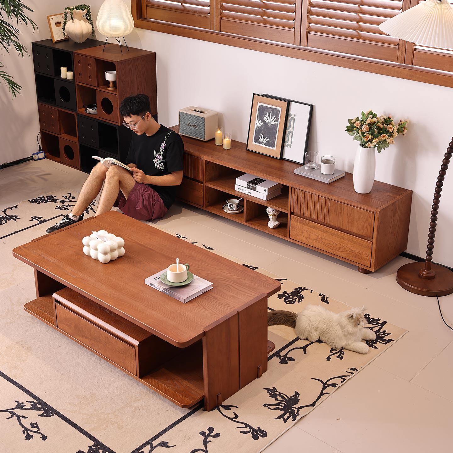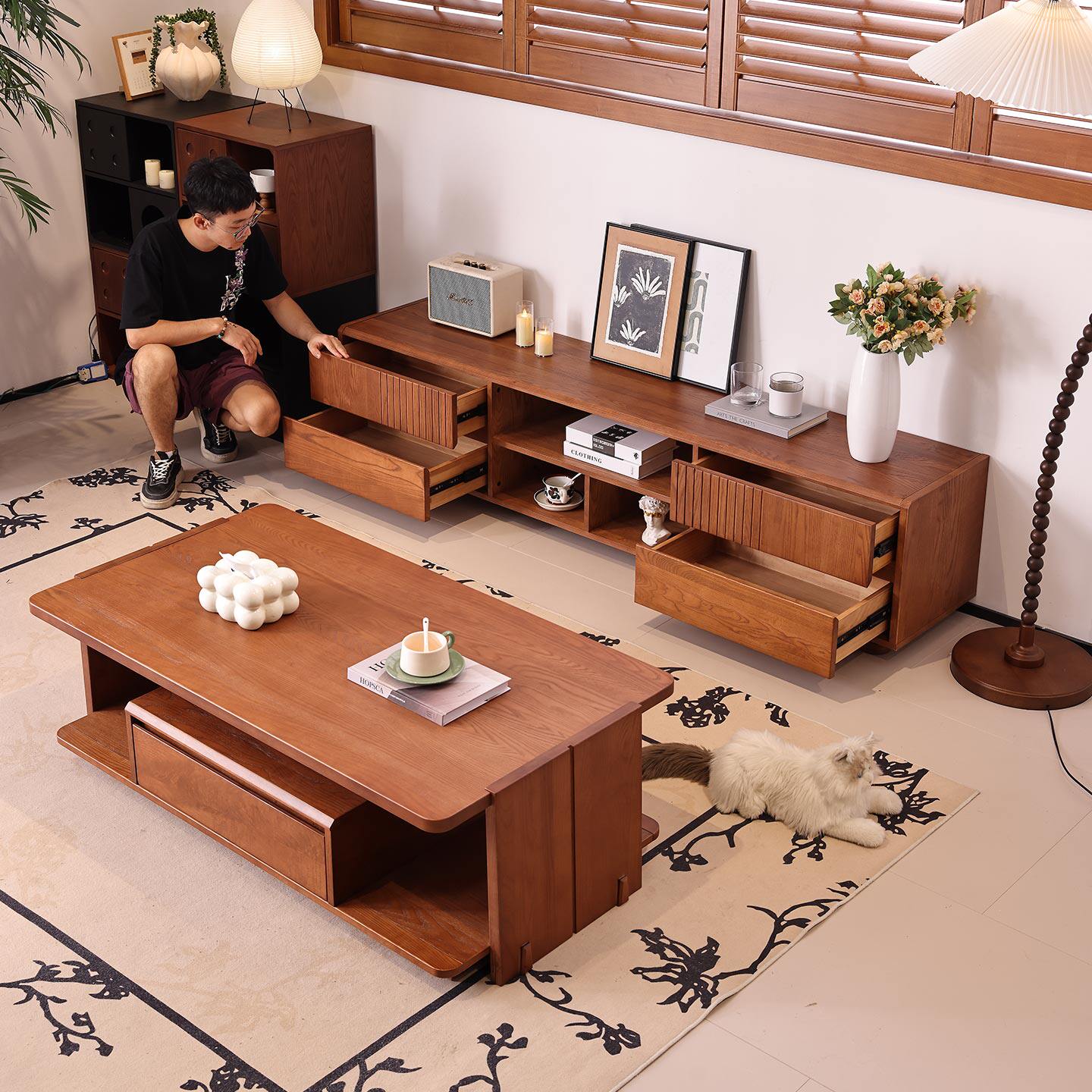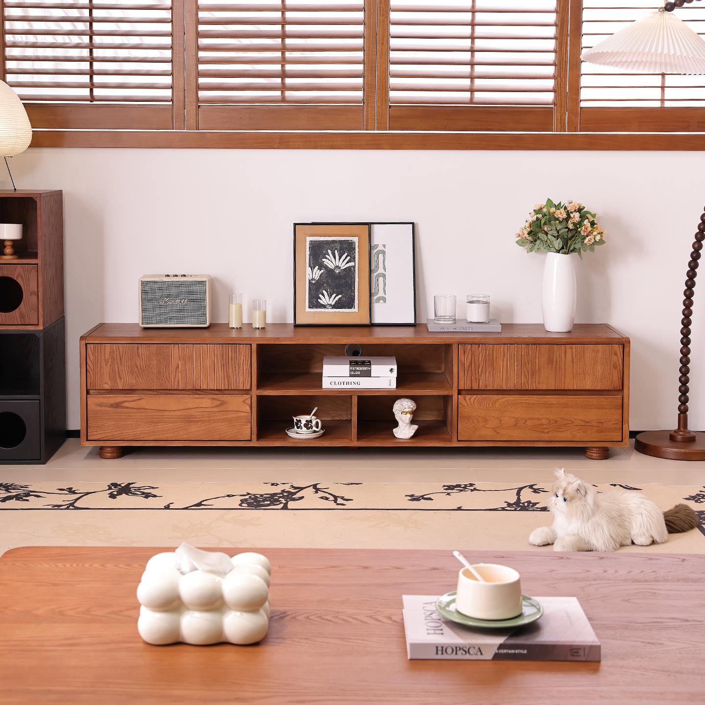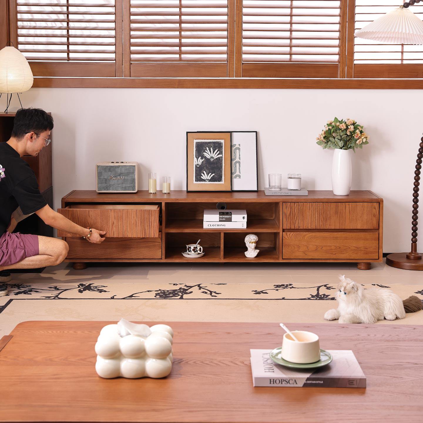 一林半舍法式复古实木电视柜茶几中古风客厅落地储物柜收纳柜子