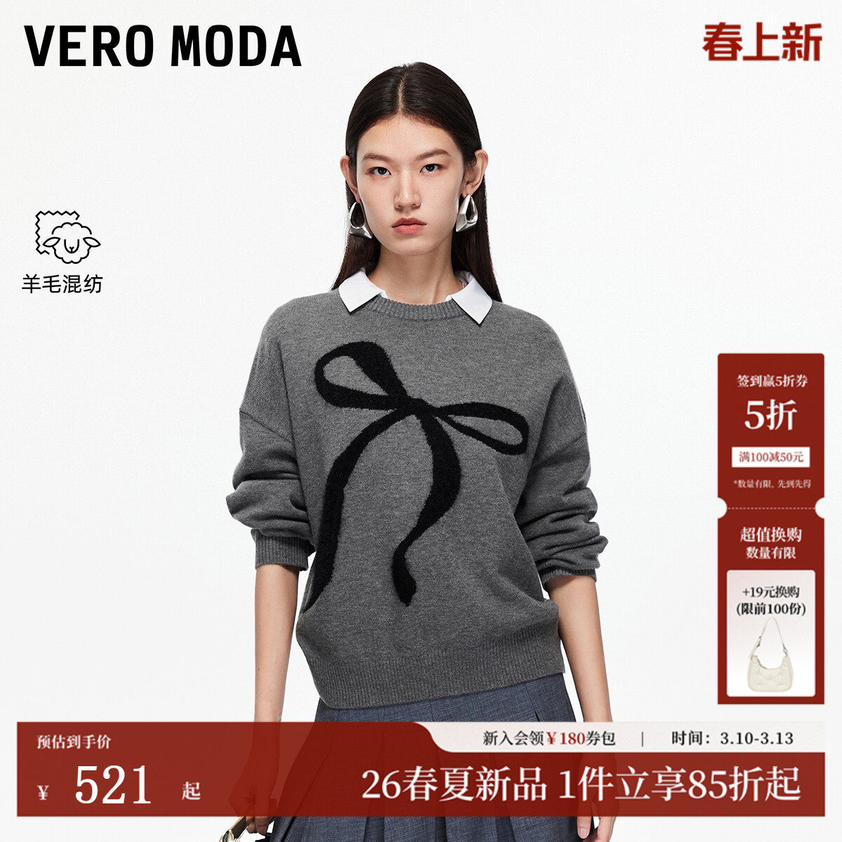 Vero Moda针织衫2026春季新款蝴蝶结印花上衣甜美淑女风325325002