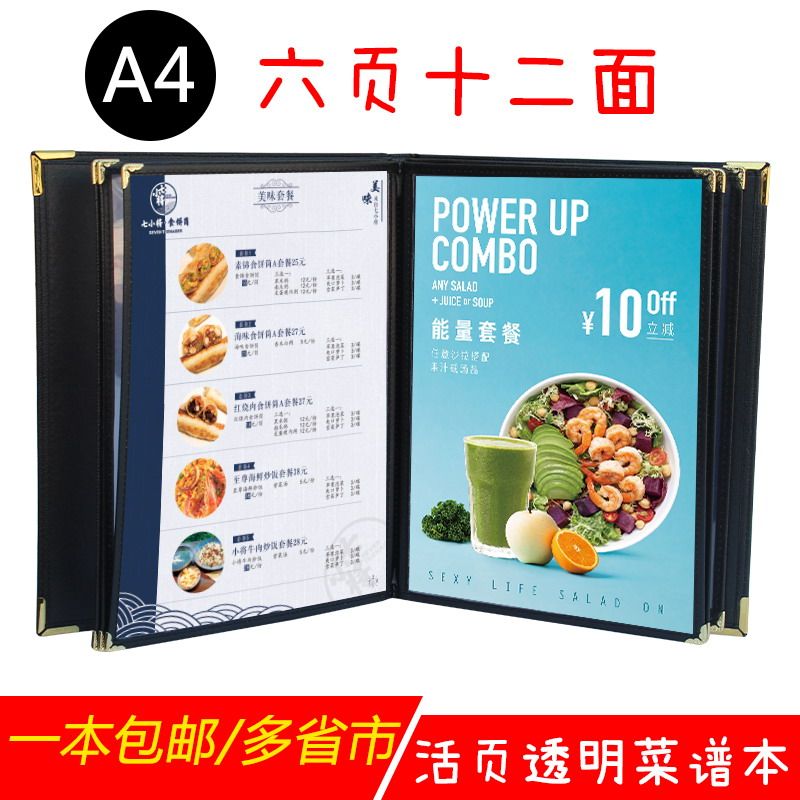 A4透明菜谱本菜单本西式活页带封面菜单本菜谱本饭店餐厅Q点菜本