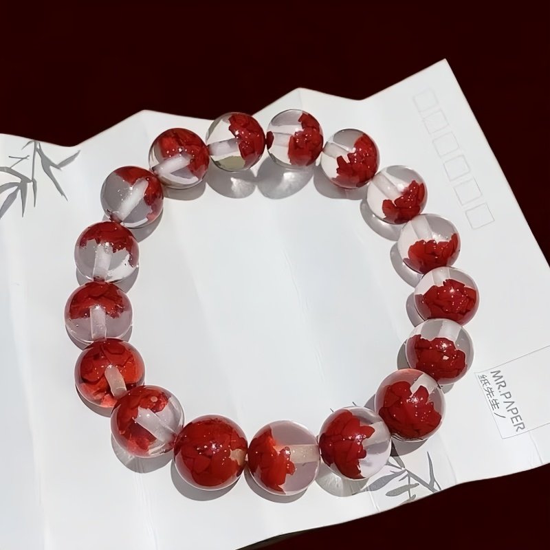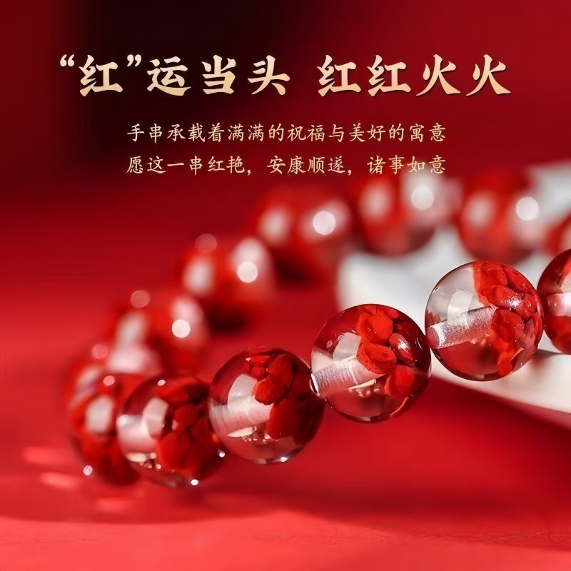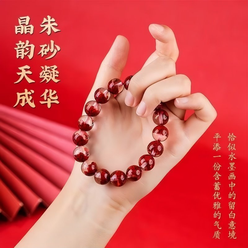 晶体朱砂手串女盘玩聚宝盆半盆工艺品念珠本命年手链男女饰品同款