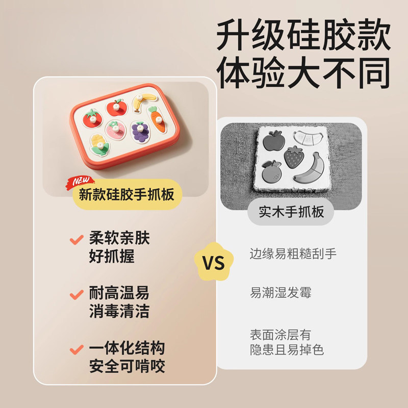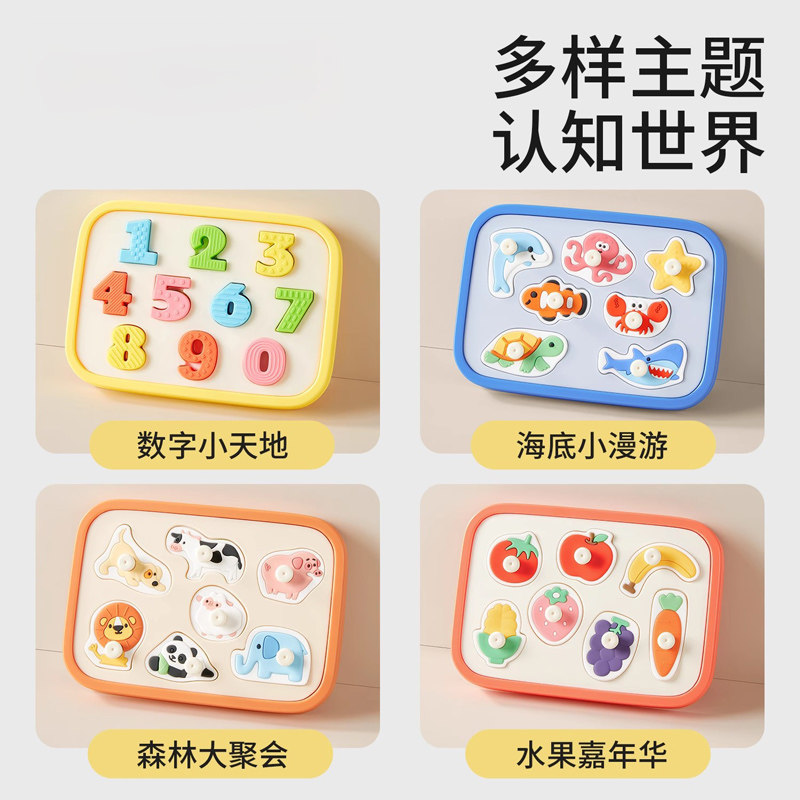 婴幼儿硅胶手抓板儿童拼图可啃咬蒙氏早教益智玩具宝宝嵌板配对