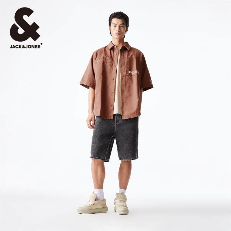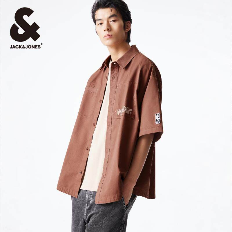 杰克琼斯夏季新款NBA联名勇士队潮宽松运动纯棉翻领短袖衬衫男装