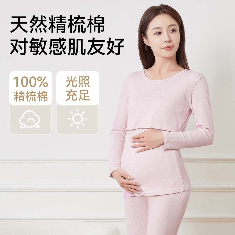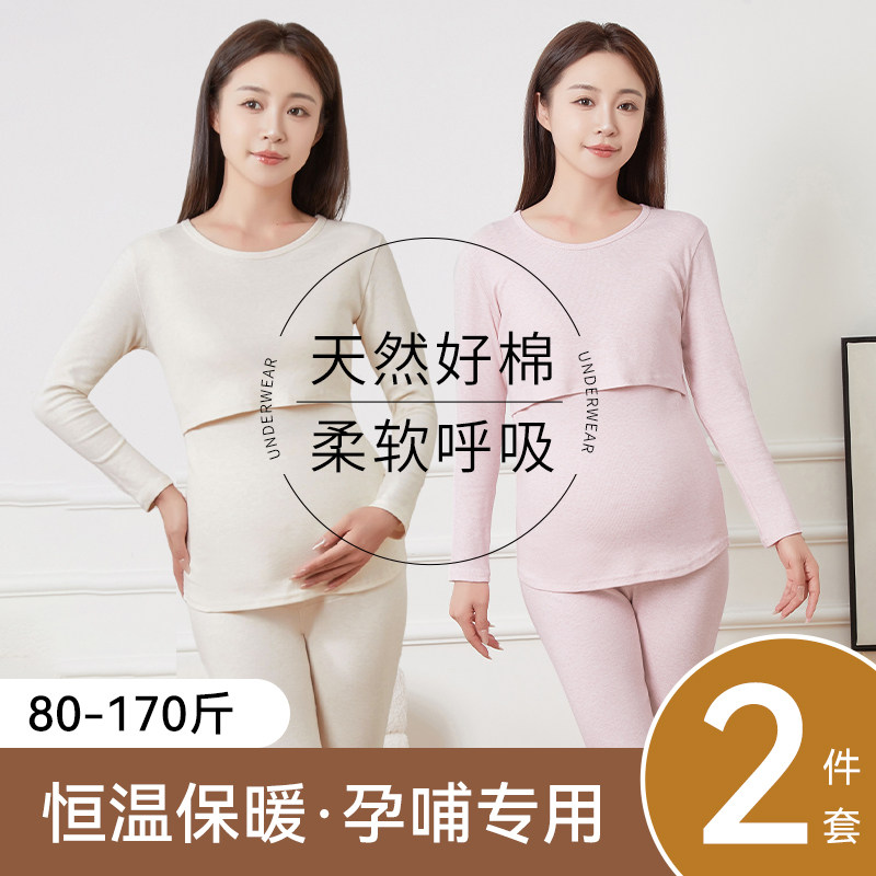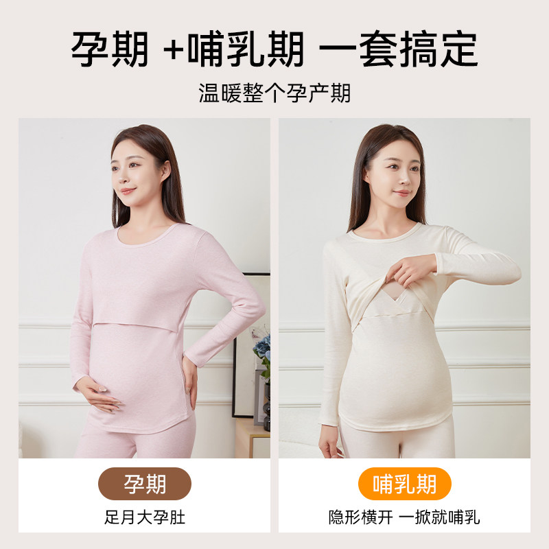 婧麒孕妇秋衣秋裤套装保暖内衣孕期打底产后哺乳喂奶大码月子服冬
