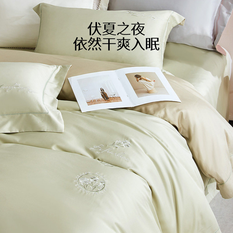 蚕花娘娘新款天丝棉绣花高档四件套轻奢高级感被套床单床上用品