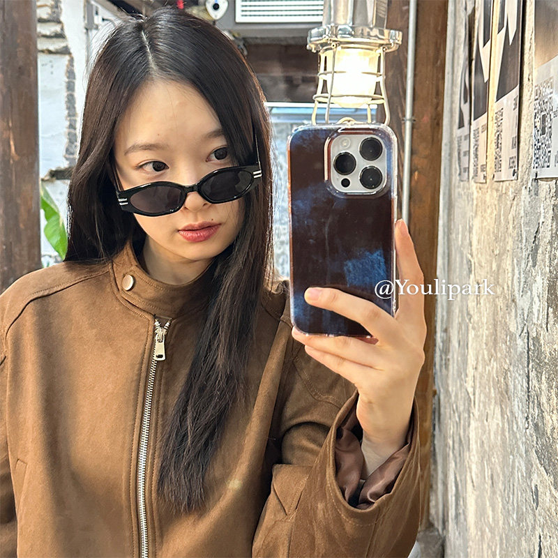 由里公园ins小众秋冬高级感复古撞色晕染15适用16pro苹果16ProMax手机壳iPhone16全包14新款14Promax保护套13