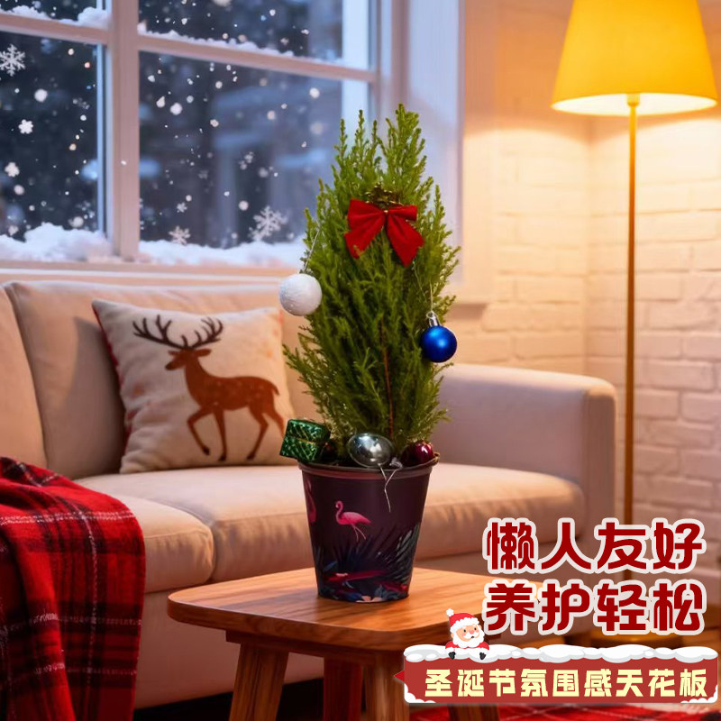 圣诞树小香松盆栽办公室内客厅桌面摆件盆景圣诞装饰植物圣诞礼物