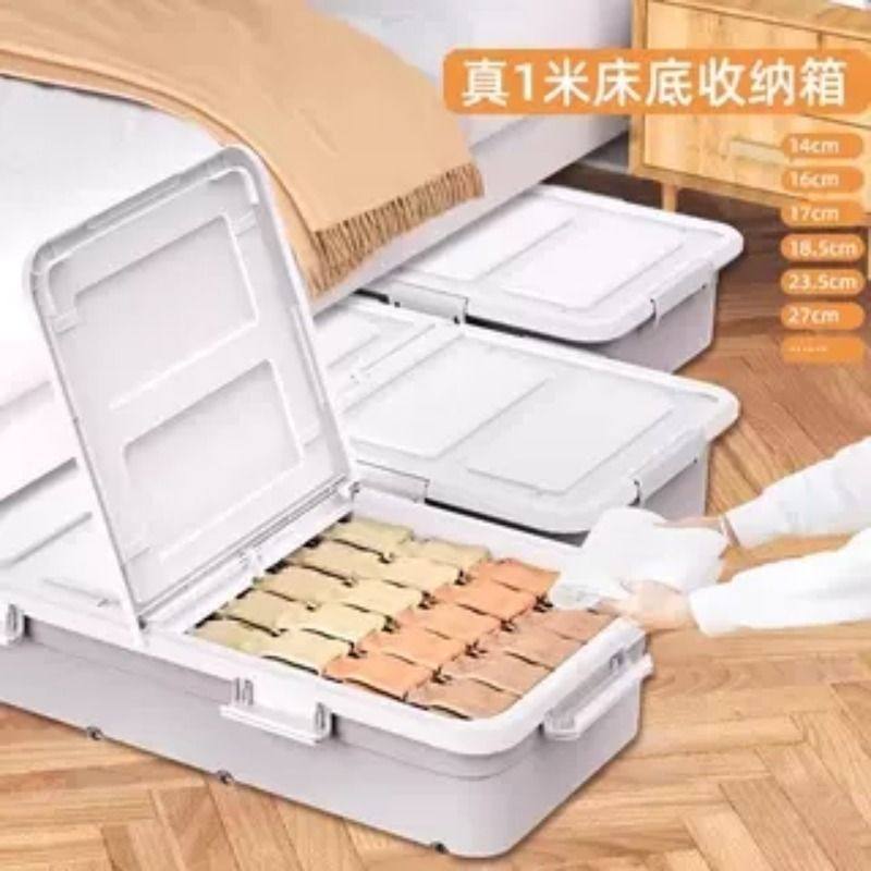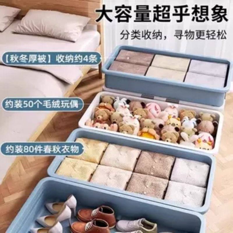 床底收纳塑料箱大容量扁平带滑轮家用衣服被子储物箱床底杂物收纳