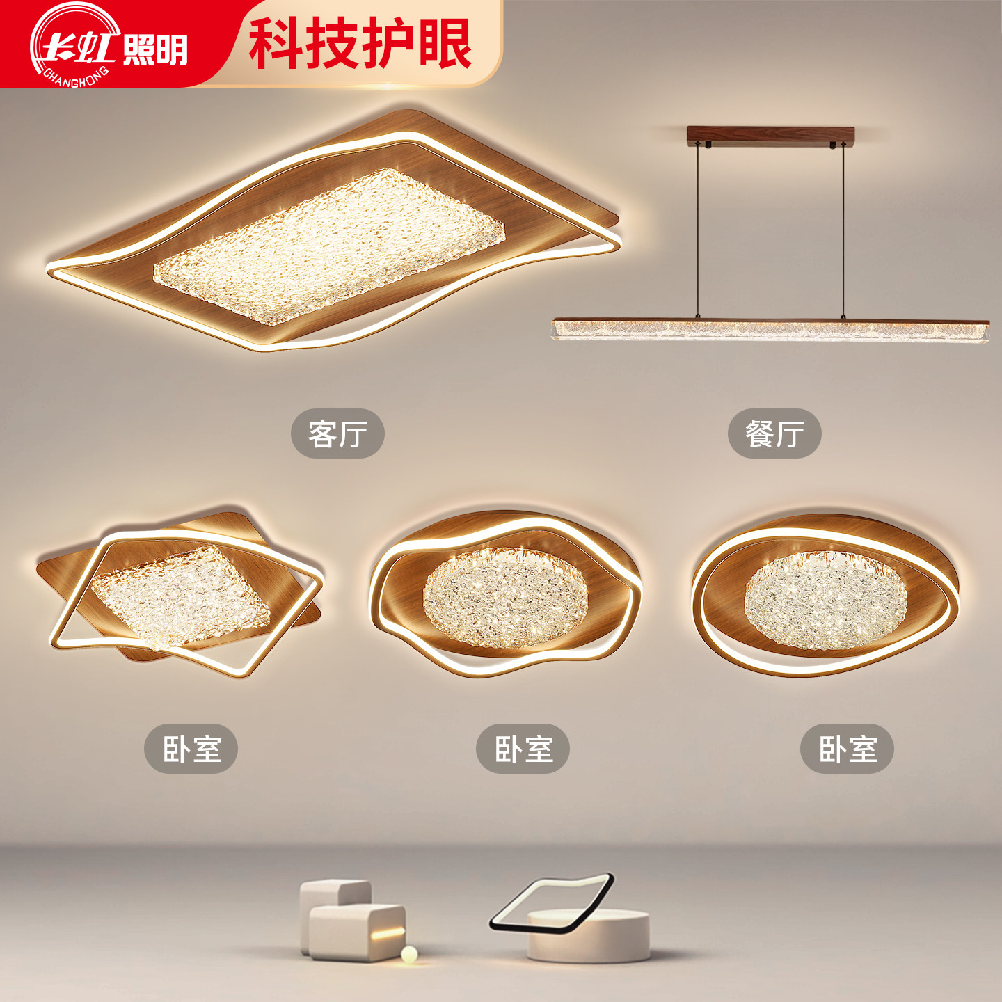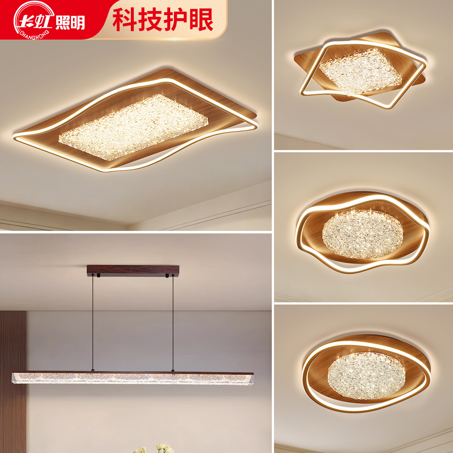 长虹 客厅吸顶灯中古风全光谱长方形波浪造型护眼灯超亮灯具套餐