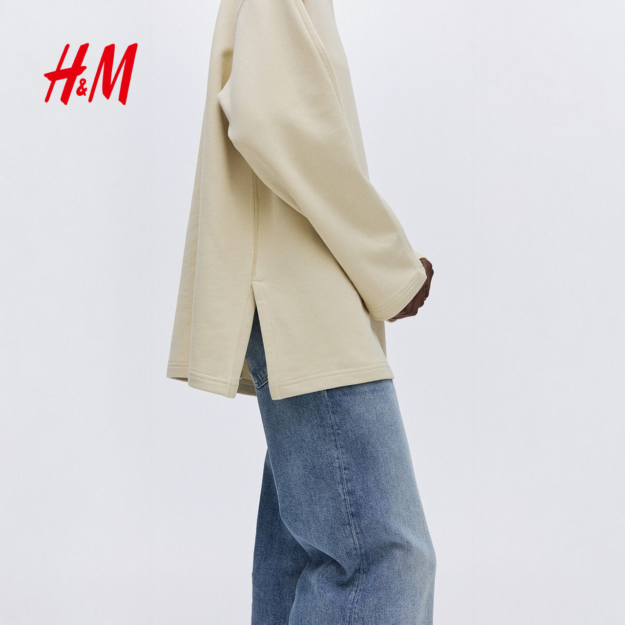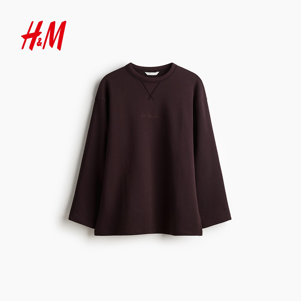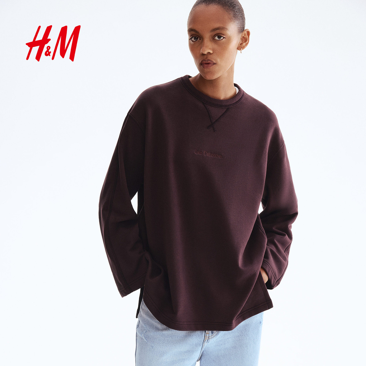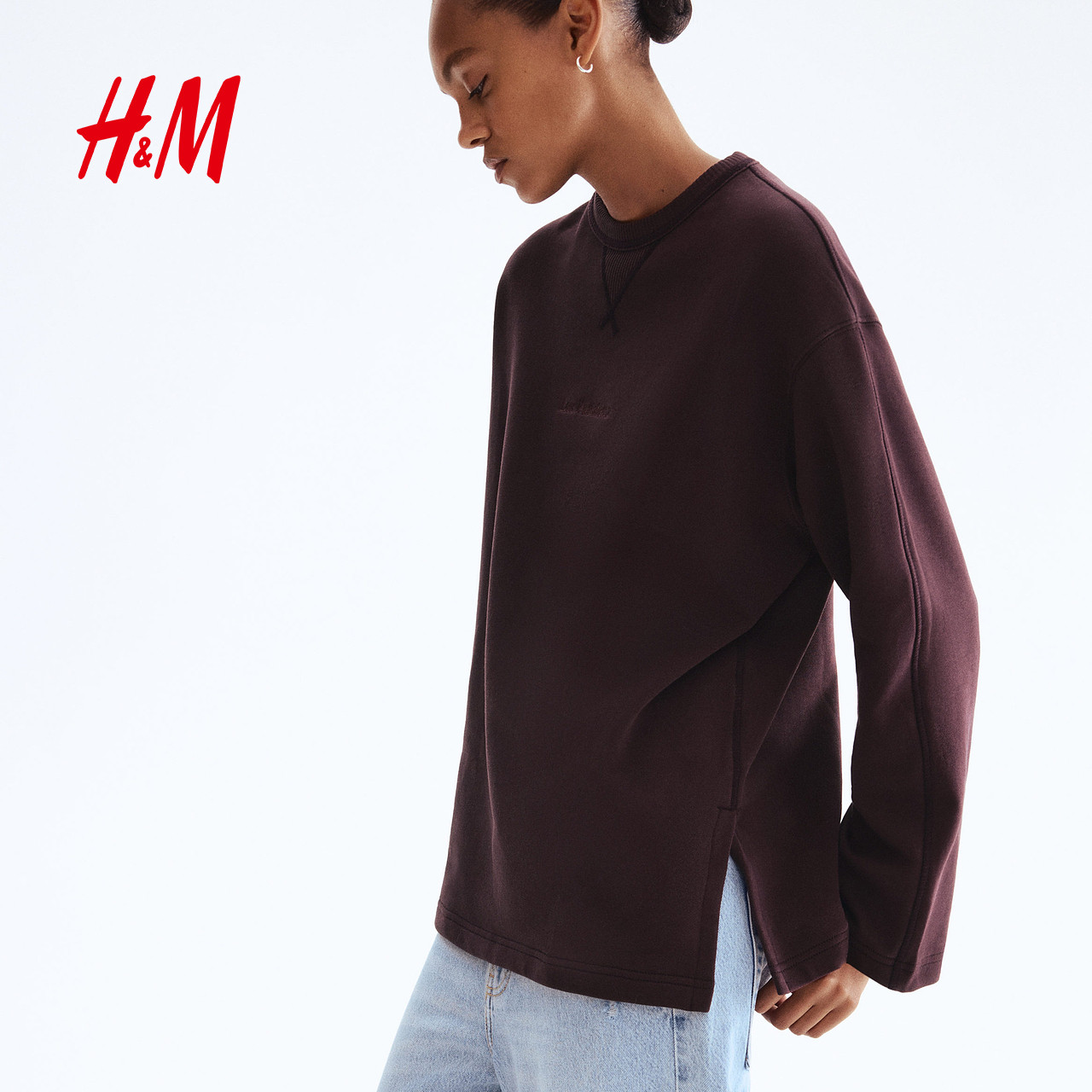 HM女装卫衣春季酒红色潮流字母图案美式卫衣1282213