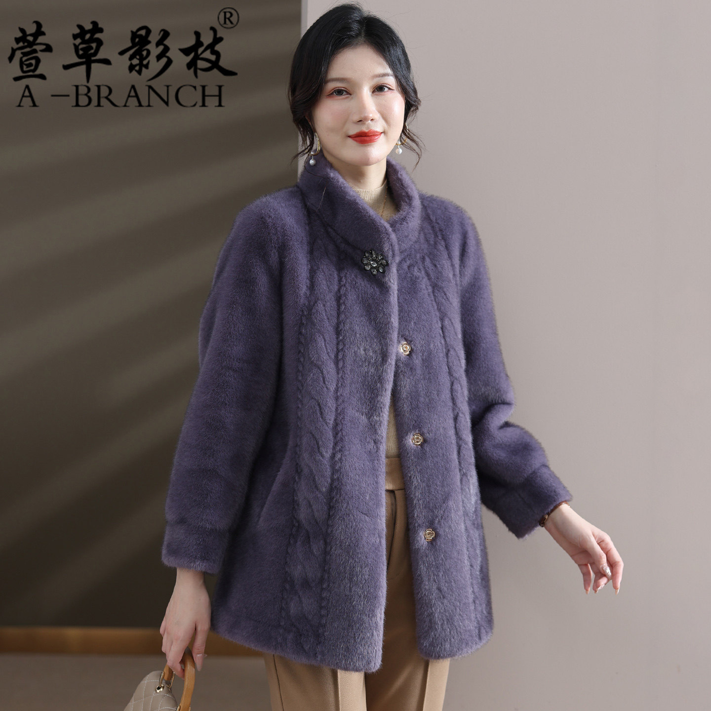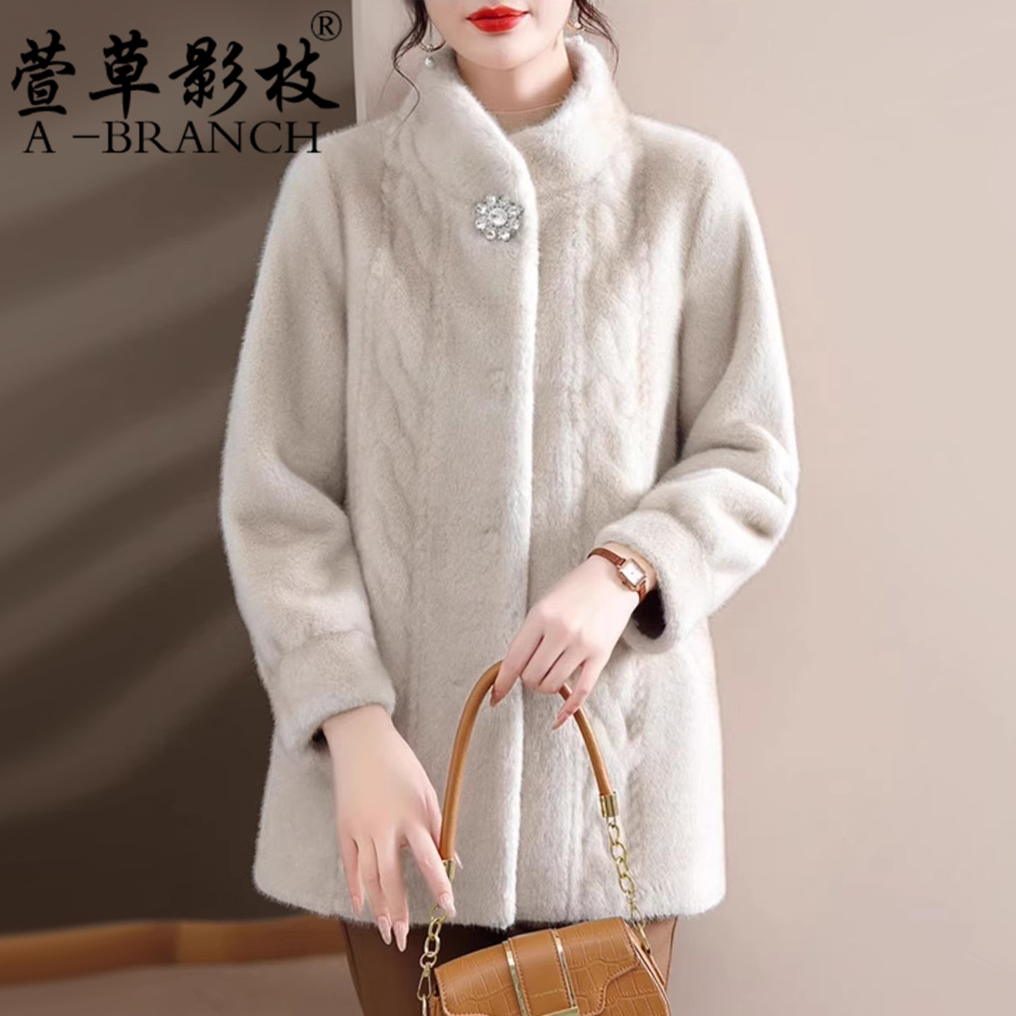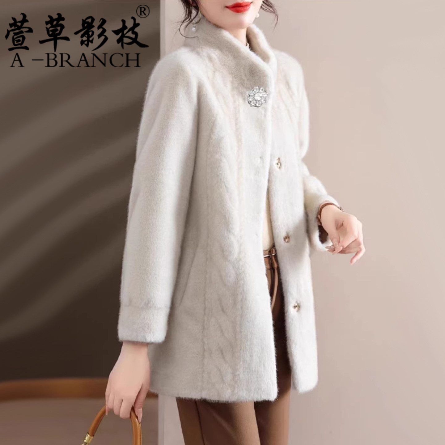 中年妈妈冬装仿水貂绒外套2025新款中老年女高贵夫人加厚毛呢大衣