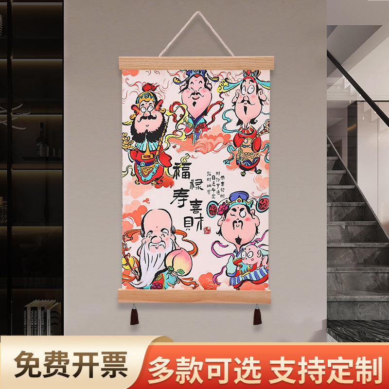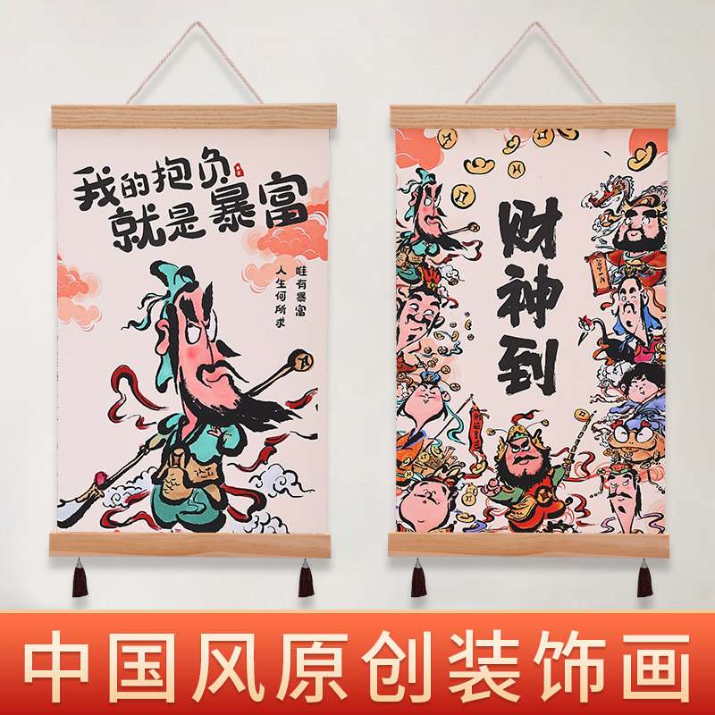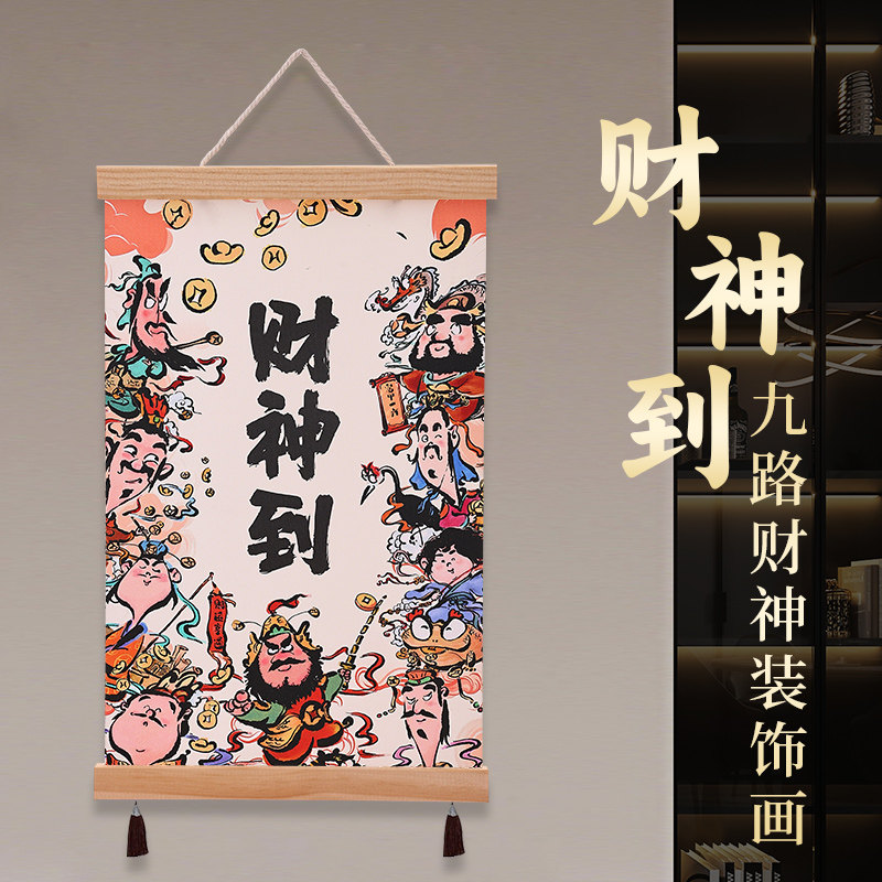 2025-2026新款九路财神装饰画艺术挂画墙画遮挡画指谁发财卧室人物书房客厅玄关油画餐厅挂画