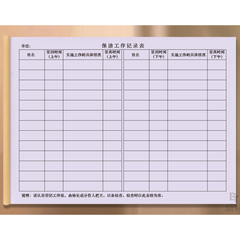 保洁工作记录表小区物业商场广场清洁工保洁阿姨公共卫生间家政服务保洁服务卫生打扫检查登记本明细册台账本