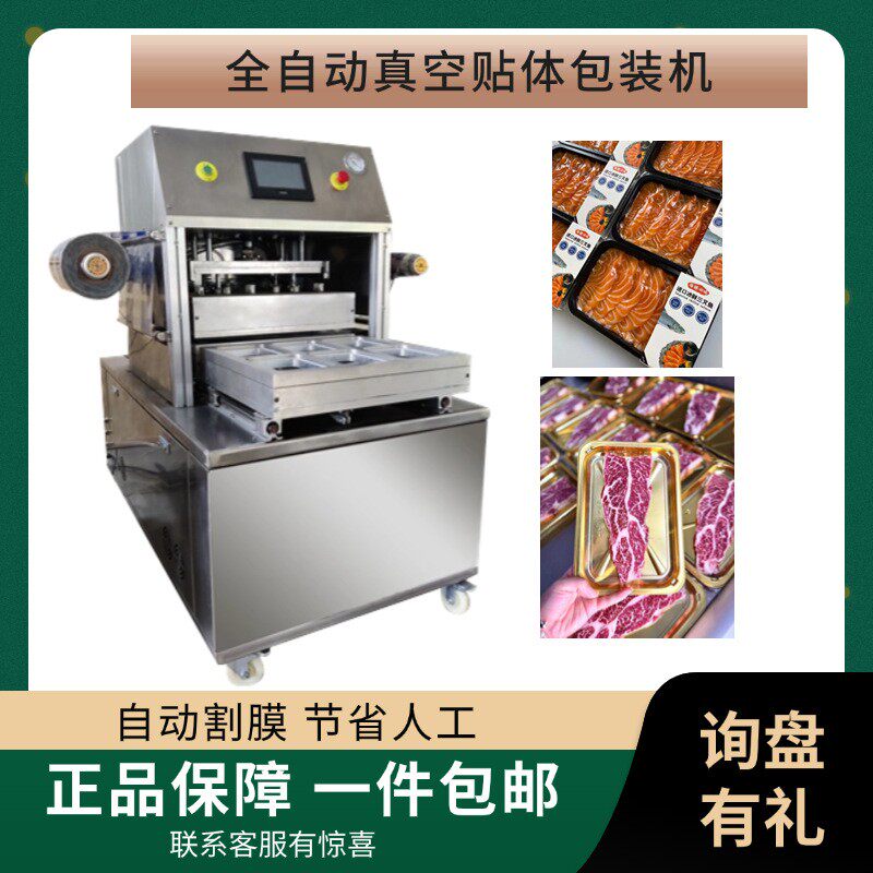 牛排羊排三文鱼榴莲割膜真空贴体包装机锁鲜覆膜机智能真空包装