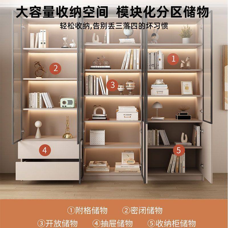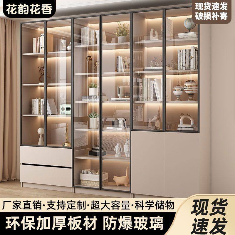 新中式书柜一门到顶加高客厅带玻璃门展示储物柜家用书房门墙书架