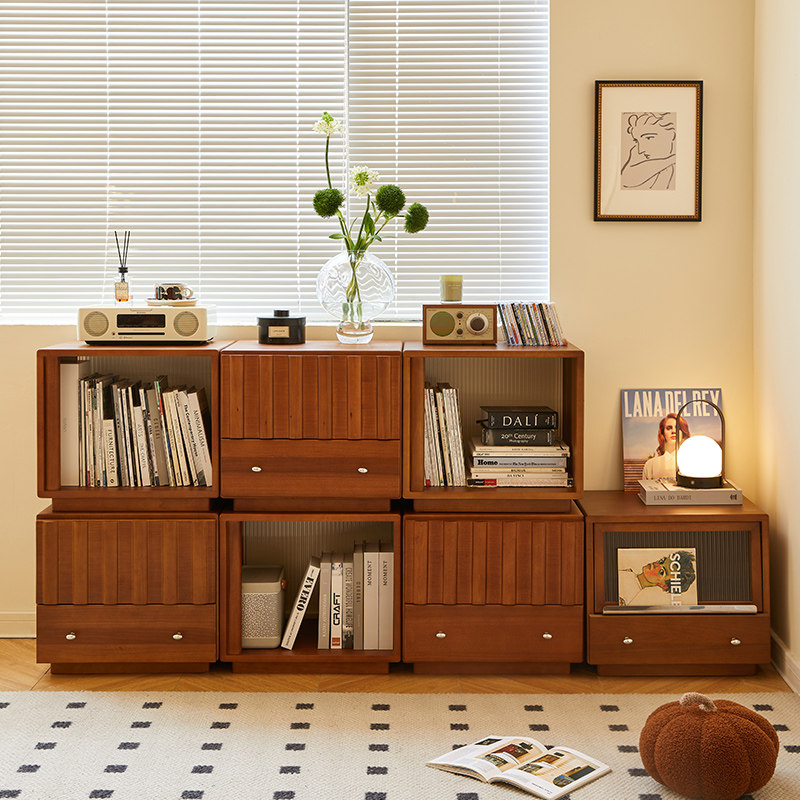 北欧实木书柜简约小户型客厅沙发边柜电视柜模块组合柜床头收纳柜