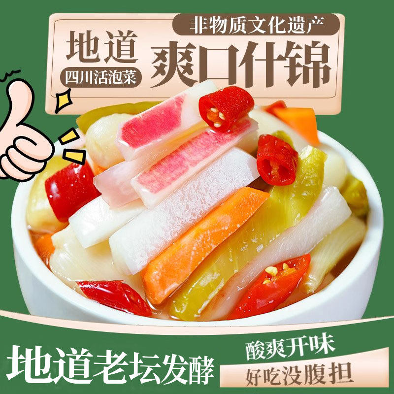 正宗四川什锦泡菜酸辣新鲜姜萝卜儿菜辣椒即食下饭菜凉拌大蒜老坛
