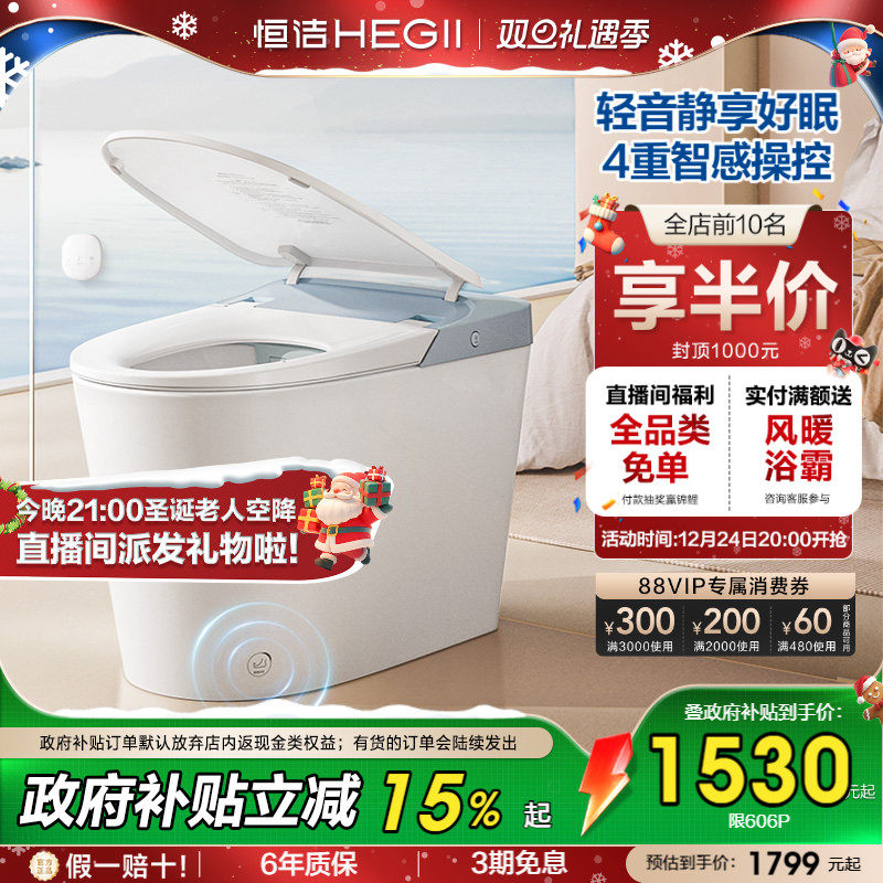 恒洁轻智能马桶座圈加热坐便器智控翻盖脚感零压冲家用小户型606P