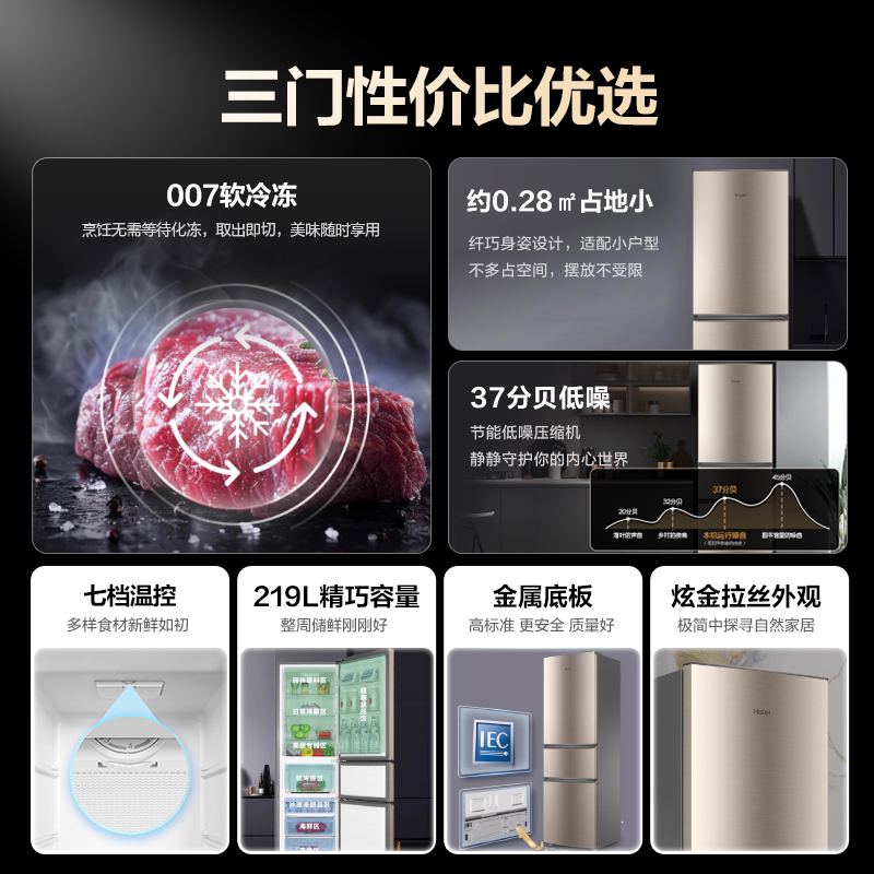【焕新补贴】海尔冰箱219L单开三开门二人小型出租房节能官方正品