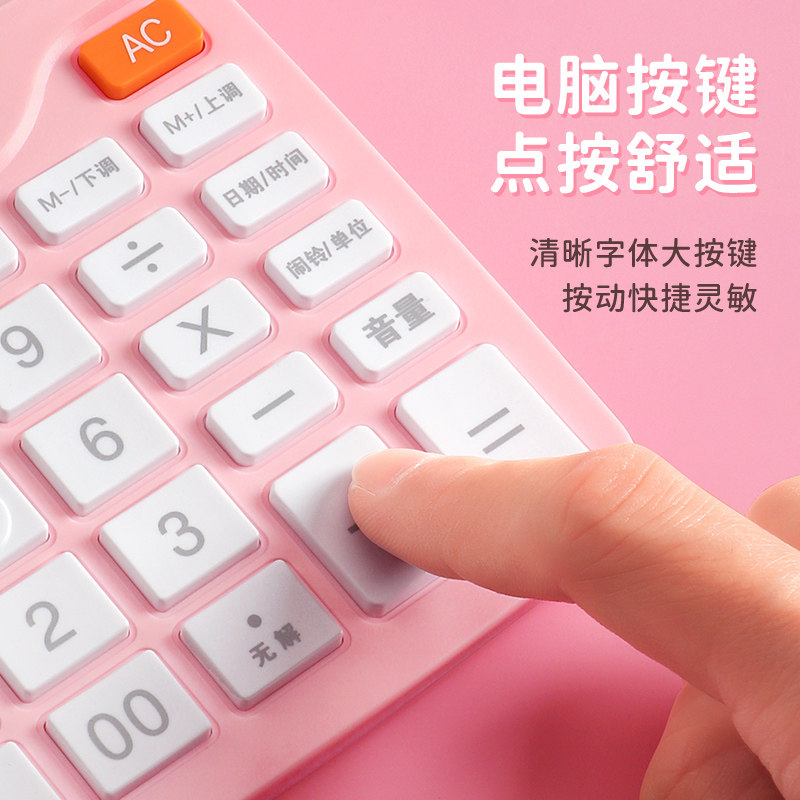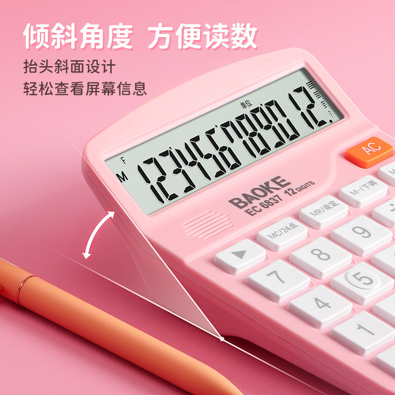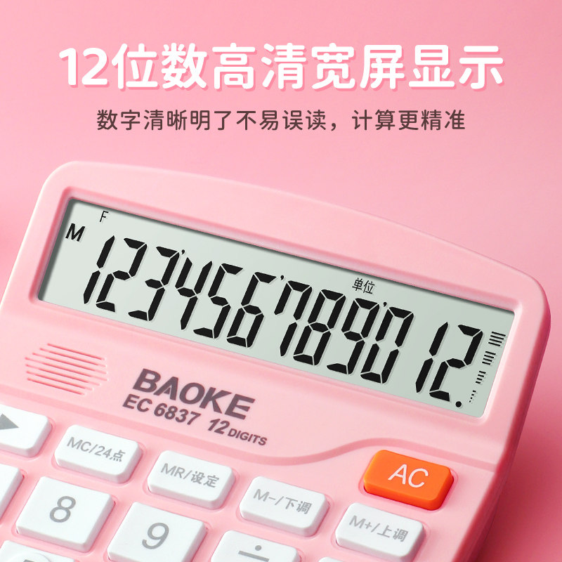 宝克EC6837语音计算器办公用 12位带时间高颜值彩色计算器 粉色计算器有声款 财务桌面便携式粉色计算机可爱