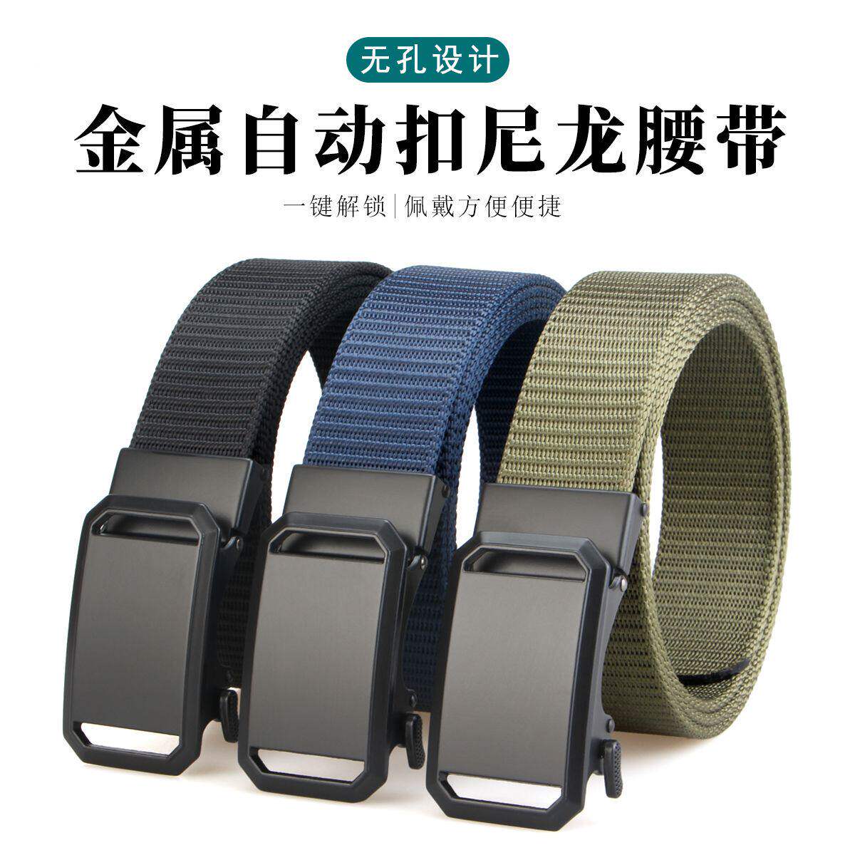 对插扣弹力皮带男自动扣时尚百搭潮流男士腰带户外尼龙帆布裤腰带