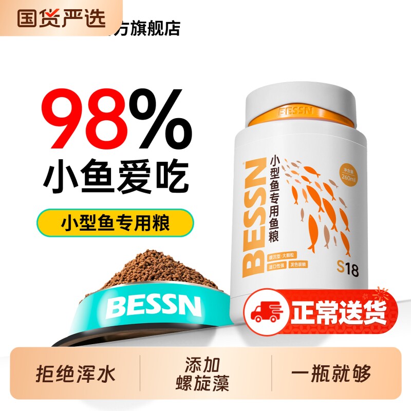 BESSN贝森小型鱼专用饲料上浮缓沉孔雀鱼斑马鱼黑尾大勾热带鱼粮