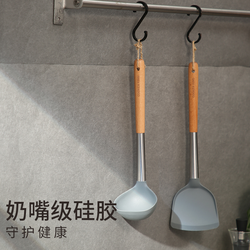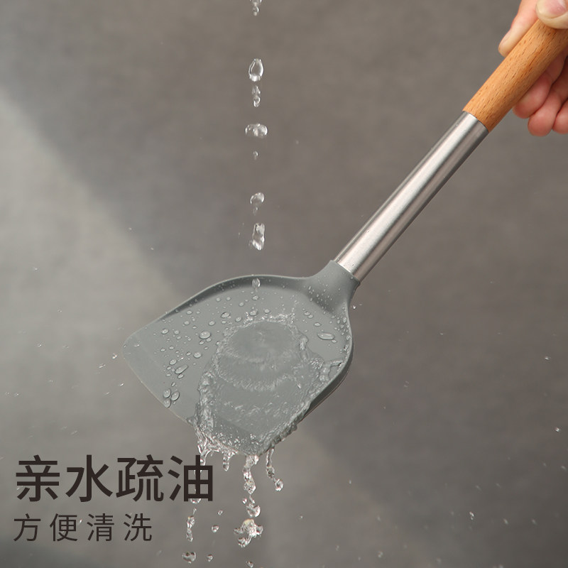 炊大皇不粘锅硅胶铲 炒菜勺铲子耐高温家用工具专用护锅木柄锅铲