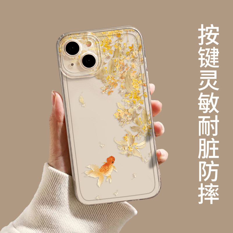 桂花金鱼手机壳适用苹果17air/15秋冬16新中式iphone14promax秋天13锦鲤12mini国风11新款x沙漠金8plus国潮xr