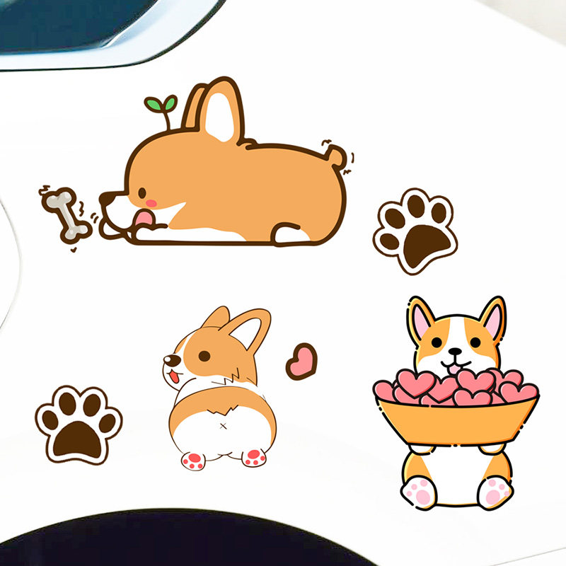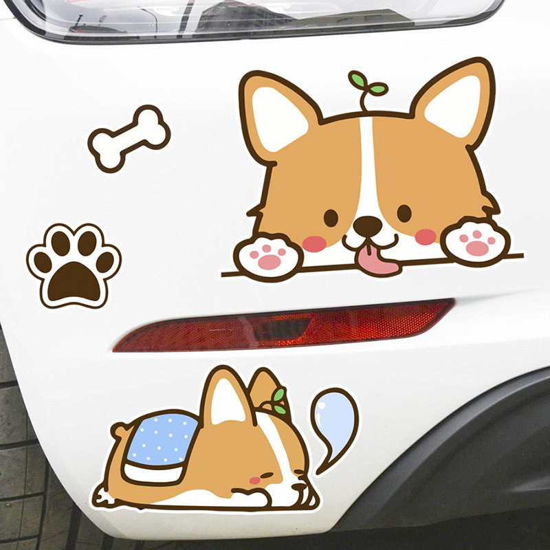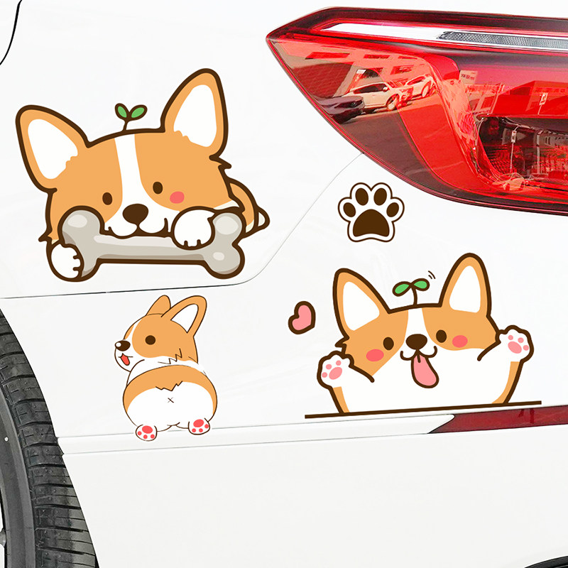 卡通柯基创意个性汽车电动车贴纸划痕遮挡车门大号车身装饰防水贴