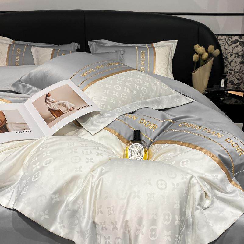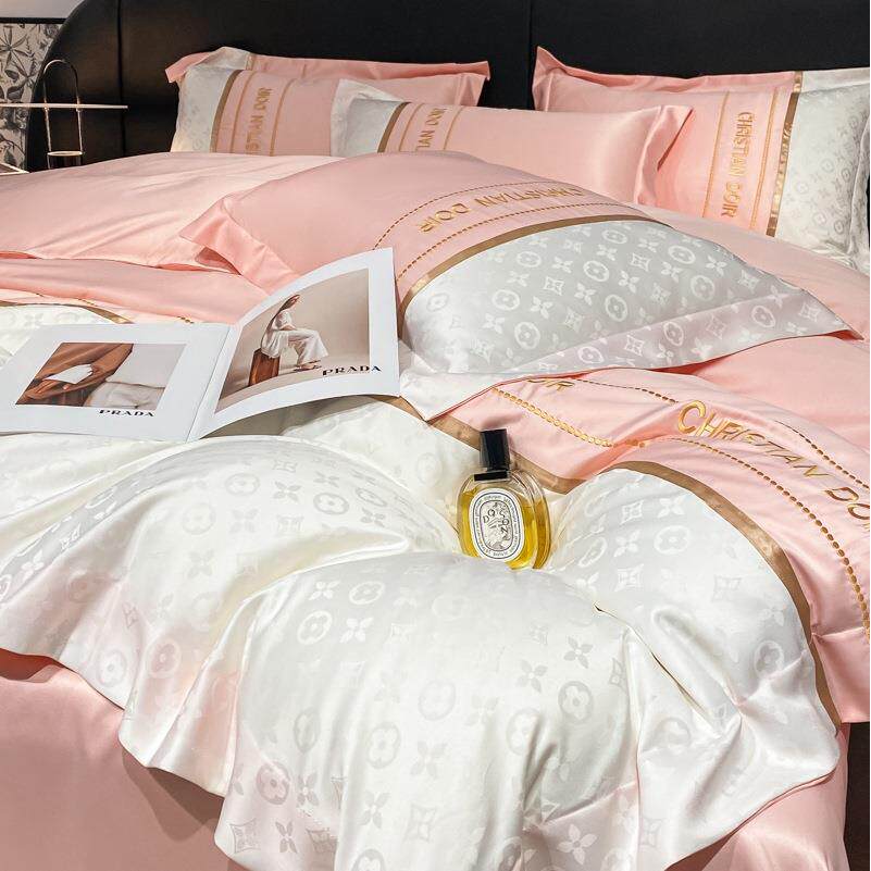 简约风床上用品水洗真丝四件套刺绣冰丝被套床单裸睡提花三件套批