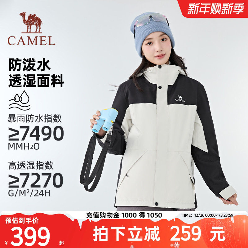 骆驼女装冲锋衣2025春新款防风防水三合一可拆卸登山服装外套女