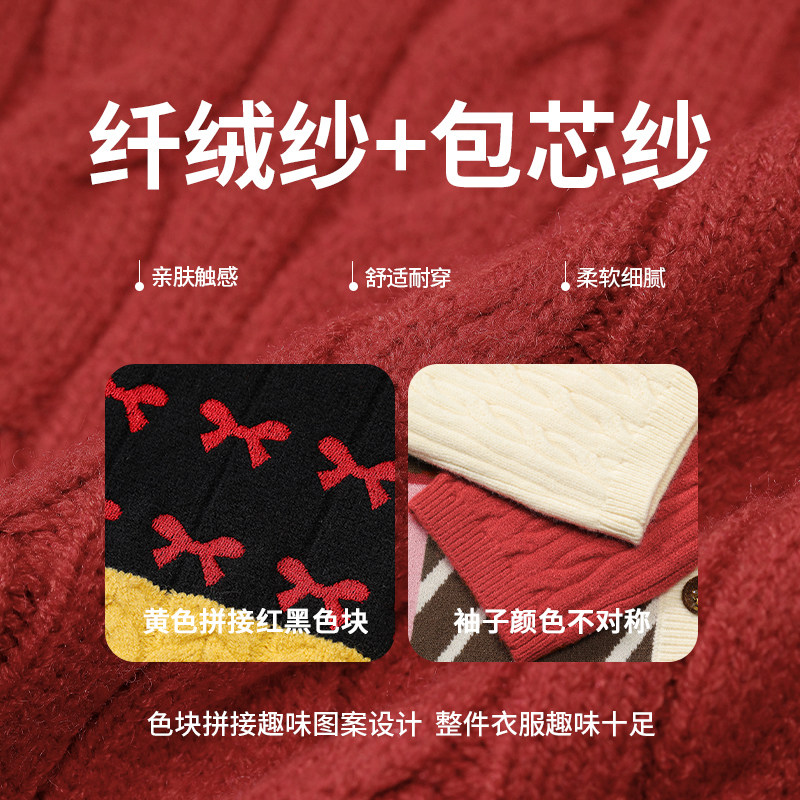 三福毛衣开衫2025新款冬季撞色圆领外套休闲慵懒风上衣女装511808