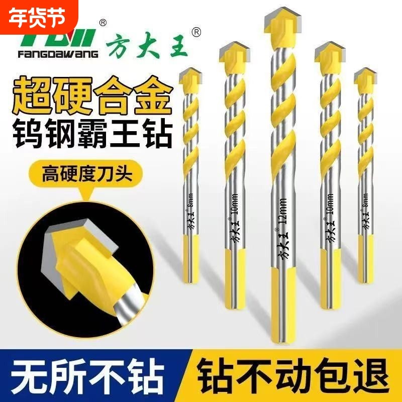方大王多功能三角霸王钻头特级合金打孔混凝土瓷砖玻璃木料手电钻