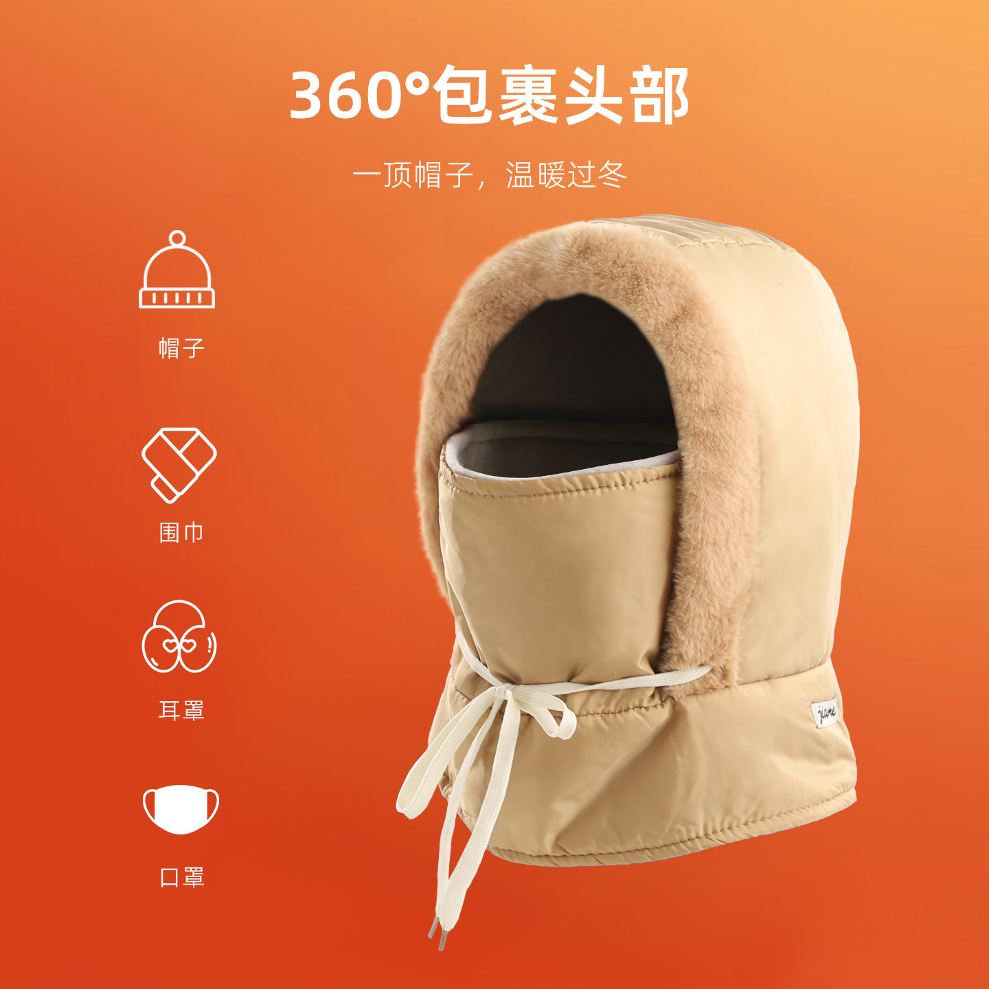 围巾帽子手套一体女连帽冬季帽可爱保暖围脖毛绒冬天三件套厚防寒
