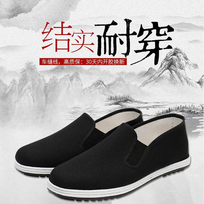鲁泰老北京布鞋男手工布鞋千层底休闲透气夏季男春秋父亲鞋一脚蹬