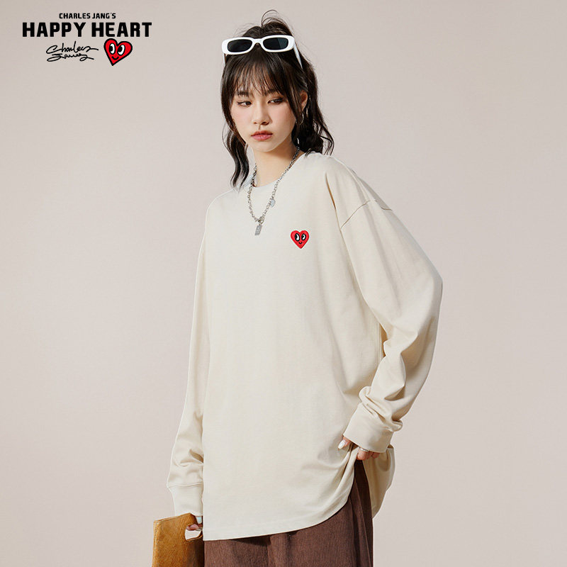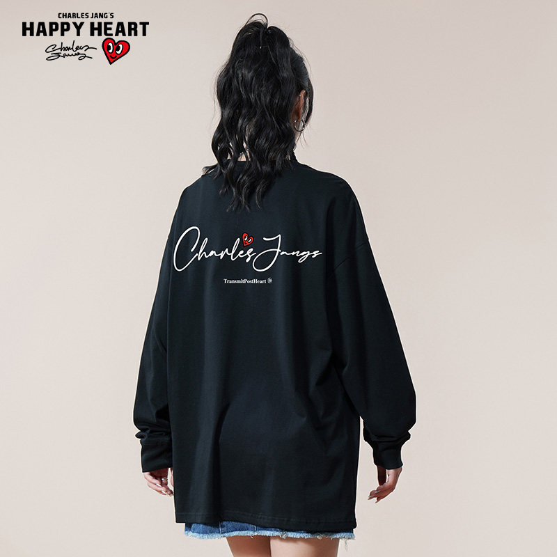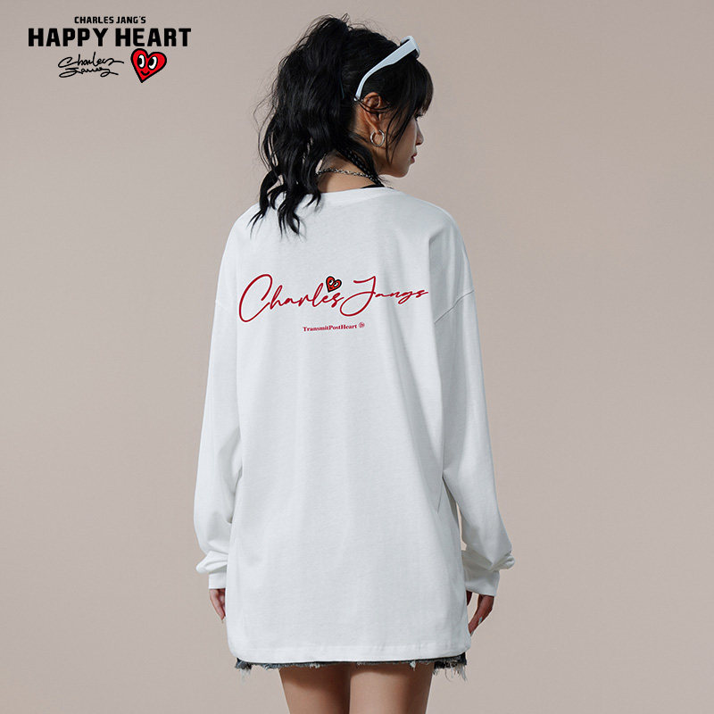 查尔斯桃心 美式个性手绘长袖t恤男春秋季字母印花内搭情侣打底衫