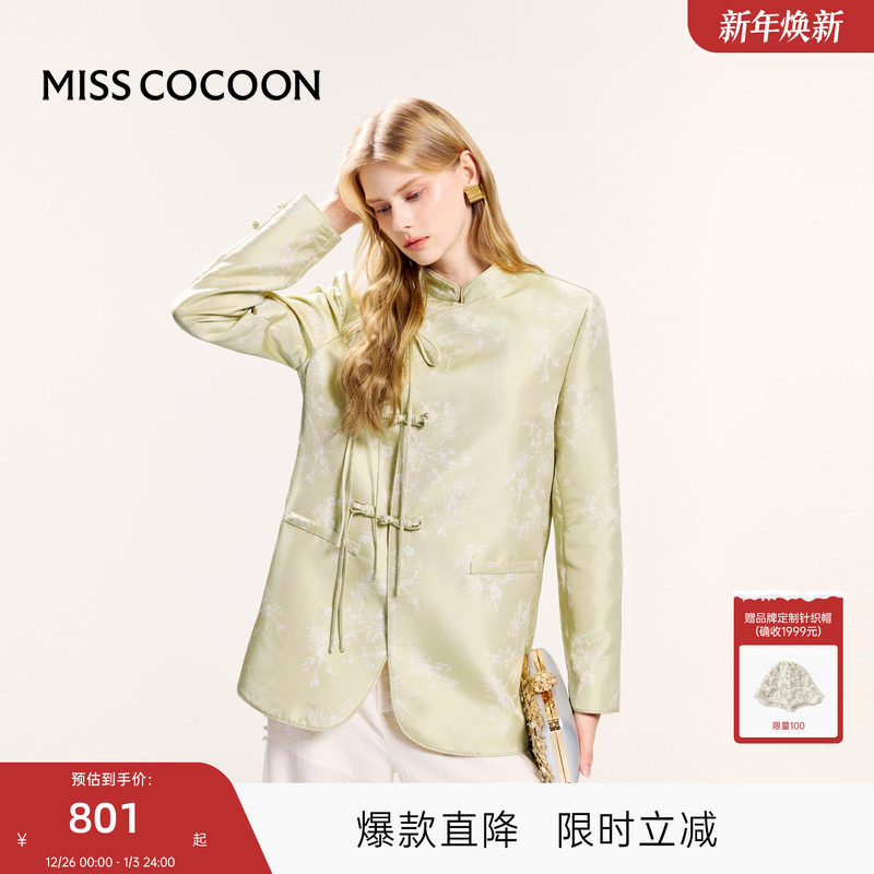 可可尼cocoon新中式外套女2025秋季新款梭织提花上衣绿色气质女装