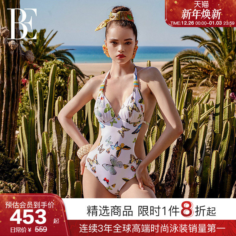 BE范德安度假系列花蝴蝶连体泳衣女性感三角显瘦保守游泳女孩绝美