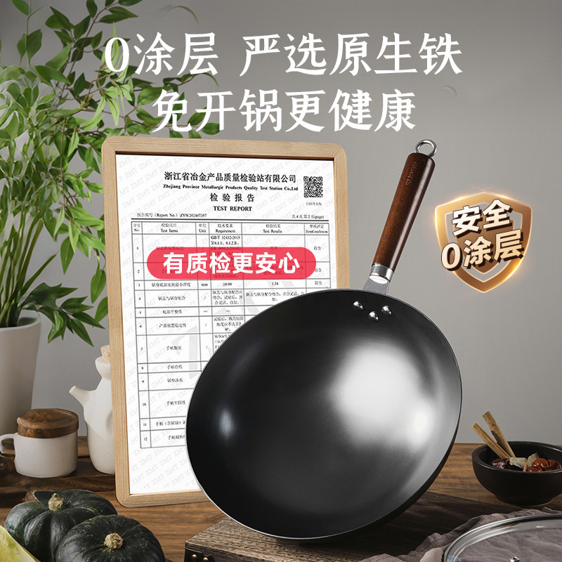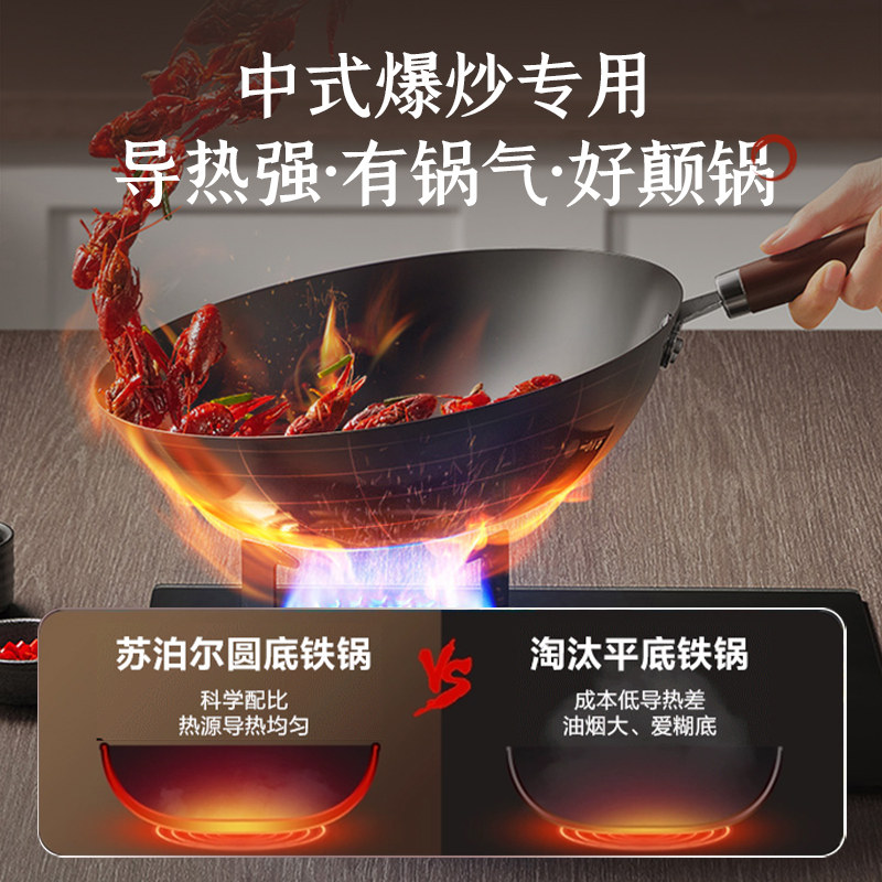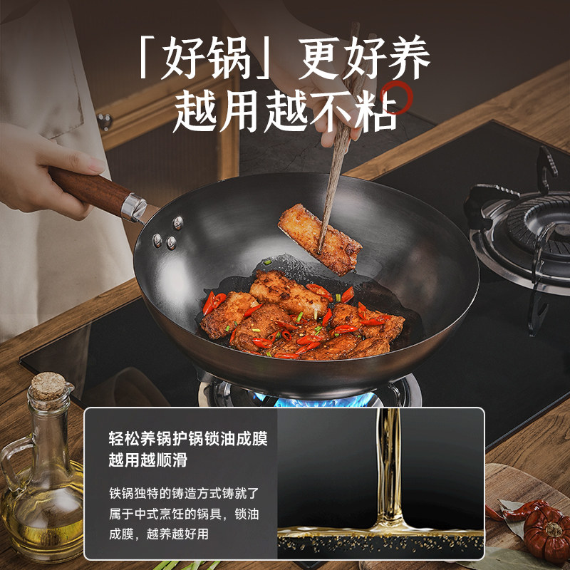 铁锅官方旗舰炒菜锅老式炒锅铁锅家用不粘锅无涂层燃气灶适用