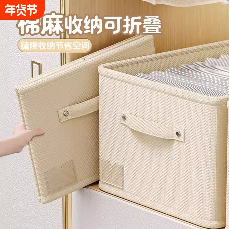 棉麻衣柜收纳箱分层衣服裤子布艺储物箱整理盒可折叠收纳盒衣物